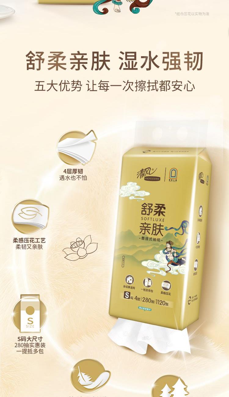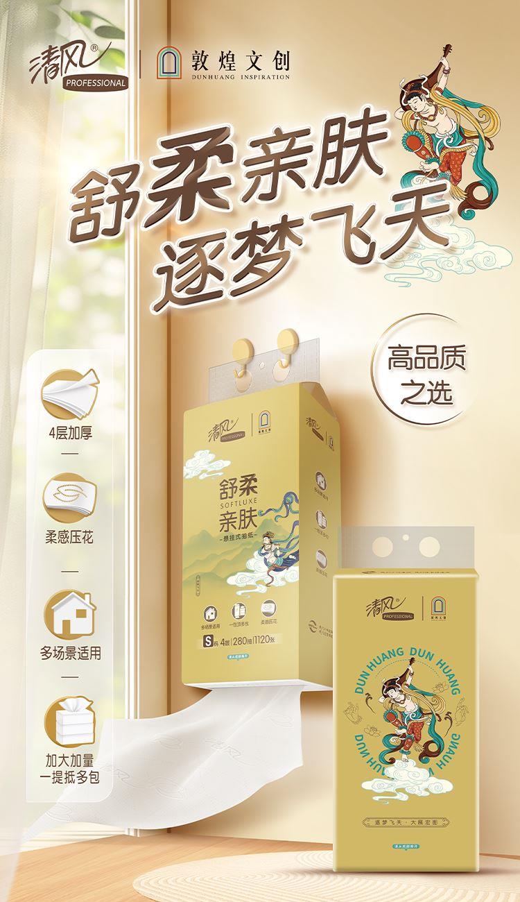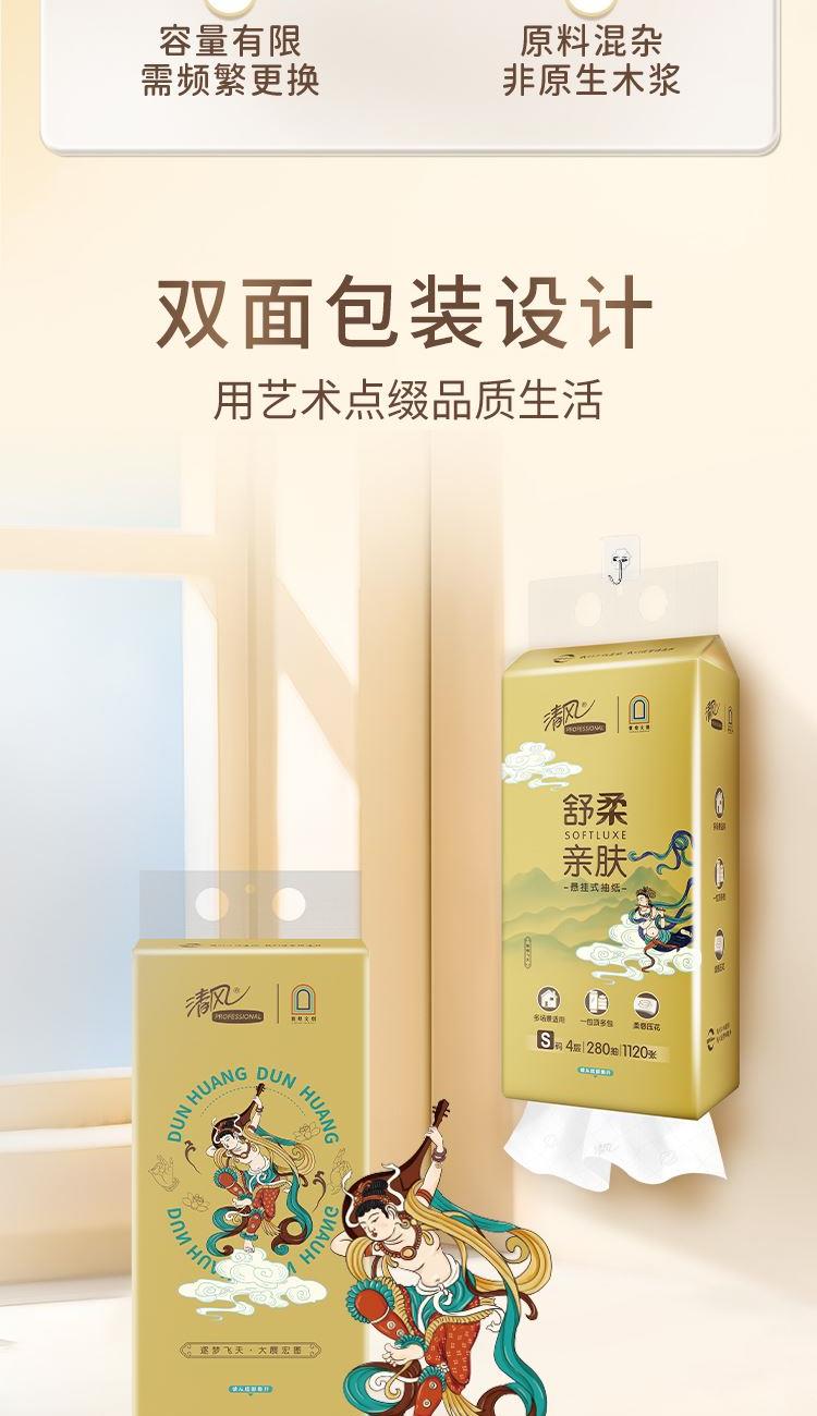 • 清风敦煌IP款悬挂式抽纸4层280抽/提*6提/箱