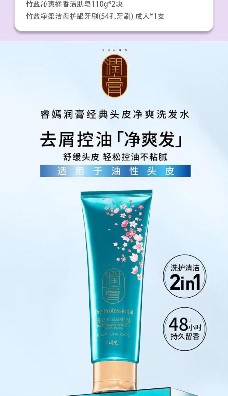 睿嫣润膏经典头皮净爽洗发水250ml*1支 安宝笛蓓缦水漾护理海盐磨砂沐浴露(静谧黑玫瑰香) 200ml*1瓶 竹盐喜马拉雅粉盐牙膏100g*1支 舒福蓝花丹醋纤维除味剂(茉莉花香)400ml*1瓶 竹盐净护洗手液(柠檬马鞭草香)300ml*1瓶 竹盐沁爽橘香洁肤皂110g*2块 竹盐净柔洁齿护龈牙刷(54孔牙刷) 成人*1支