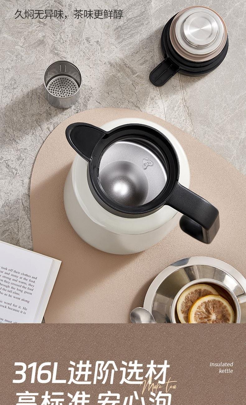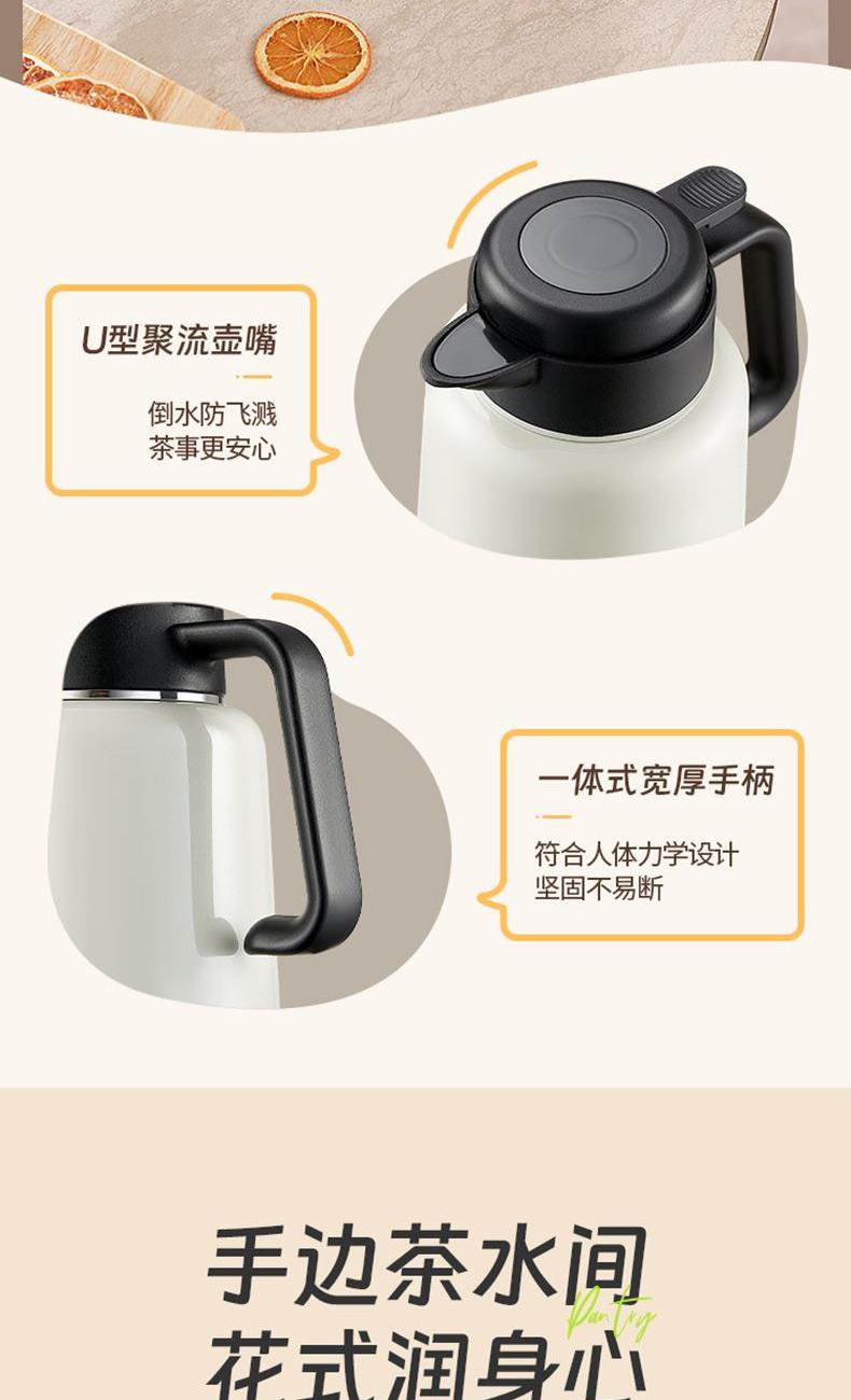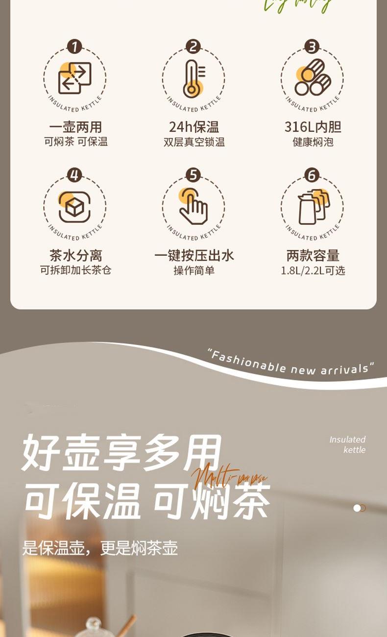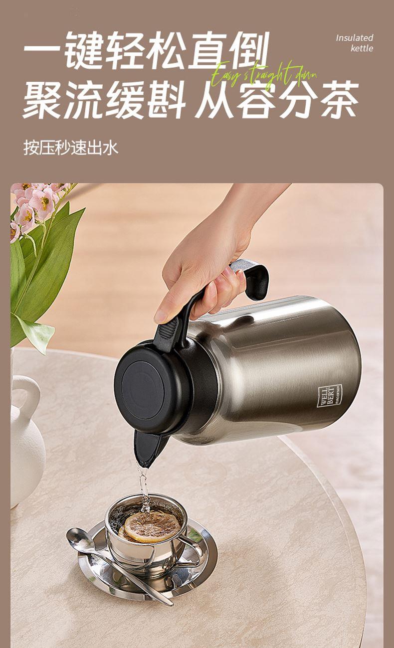 容量:1800ml 材质:316L奥氏体不锈钢 316L进阶选材,高标准,放心用。 茶水分离,细密茶滤,有效过滤茶渣。 一键轻松直倒,U型聚流壶嘴,倒水防飞溅。 全身拆洗无忧,无清洗死角。