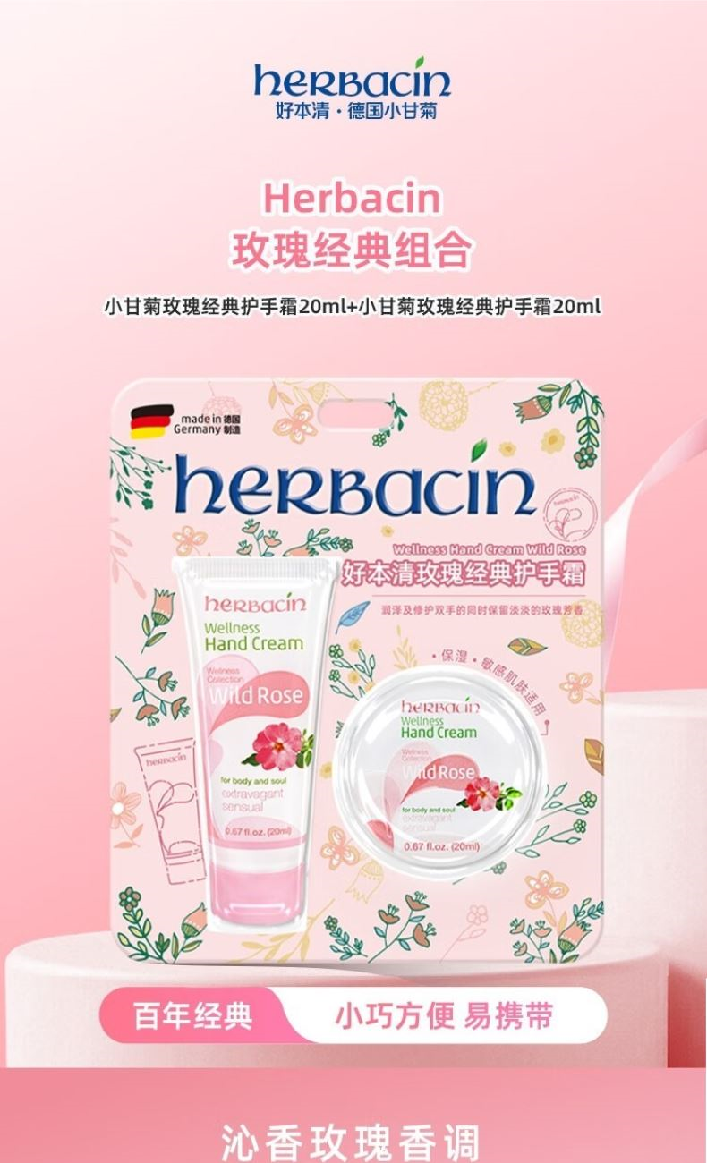 原产地:德国 规格:玫瑰经典护手霜20ml、玫瑰经典护手霜20ml 功效:滋润手足、抚平粗糙、轻盈舒缓、补水防护、打造细化水嫩肌肤 保质期:4年 适合肤质:所有肌肤 礼盒尺寸:16*13.5cm 条形码:4013718981253