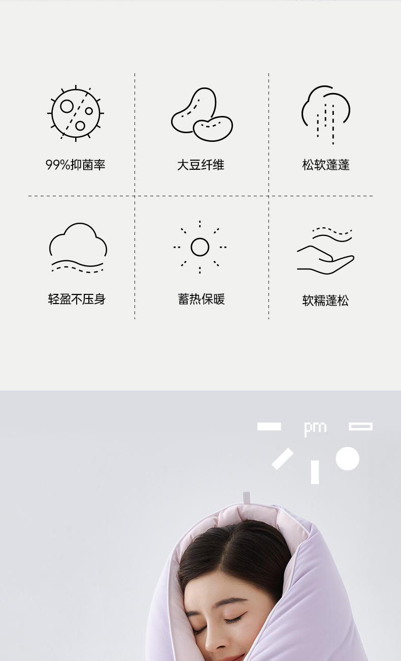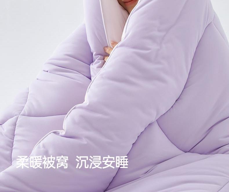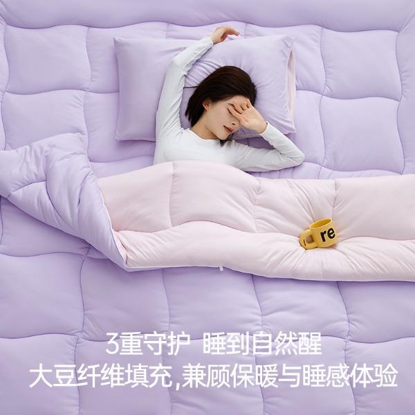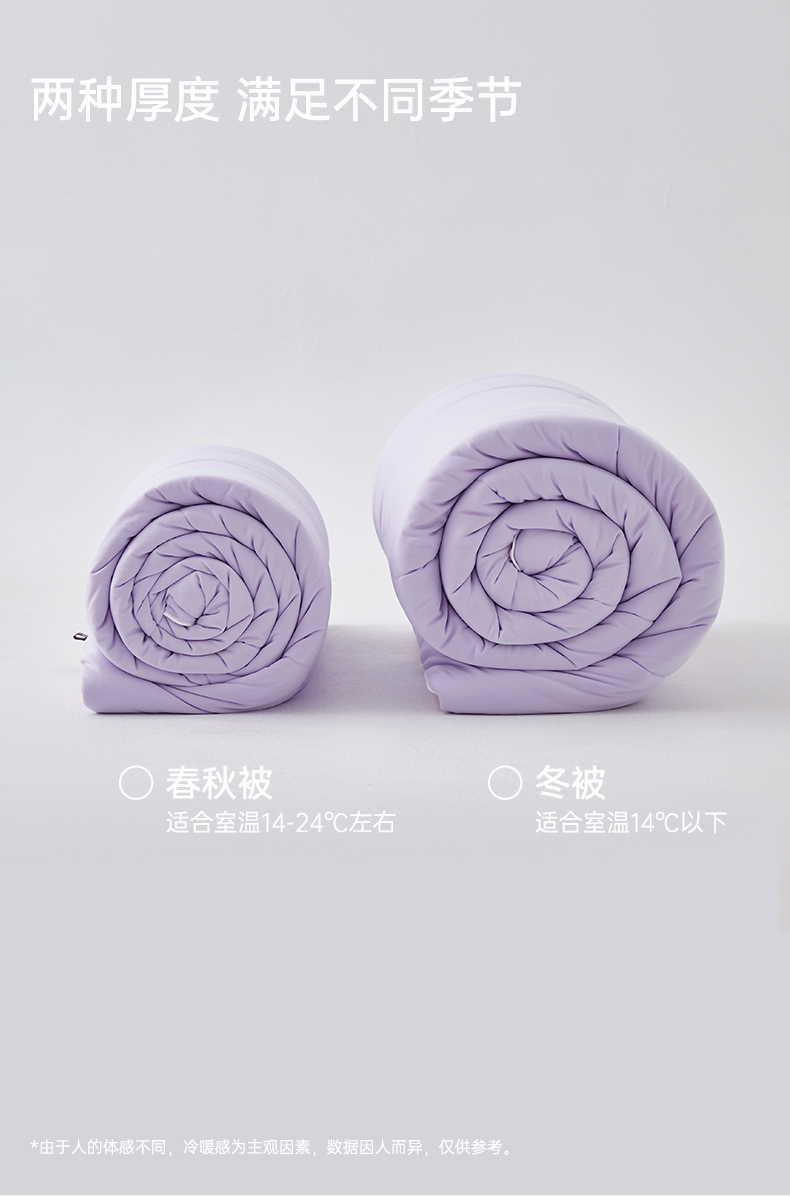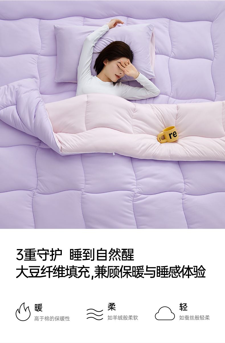 产品规格: 冬被(150*200cm、200*230cm、220*240cm) 产品净重:冬被:2.3kg、3.5kg、4kg 外箱毛重: 冬被:3.35kg、4.52kg、5.03kg 外箱尺寸冬被:300*300*530mm 产品颜色:水波绿/莫奈紫 1.采用密度高纱线细的针织面料工艺,颠覆传统针织面料手感,柔软度超过市面上95%的被子 2.科学配比大豆纤维填充物,针织面料工艺打造柔软滑糯,蓬松睡不扁 3.定位衔缝工艺结合固定面料填充平整贴合,速热锁温 4.天然大豆纤维填充,加乘针织面料工艺吸湿透气,婴儿也能贴肤睡