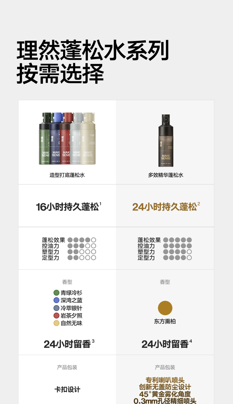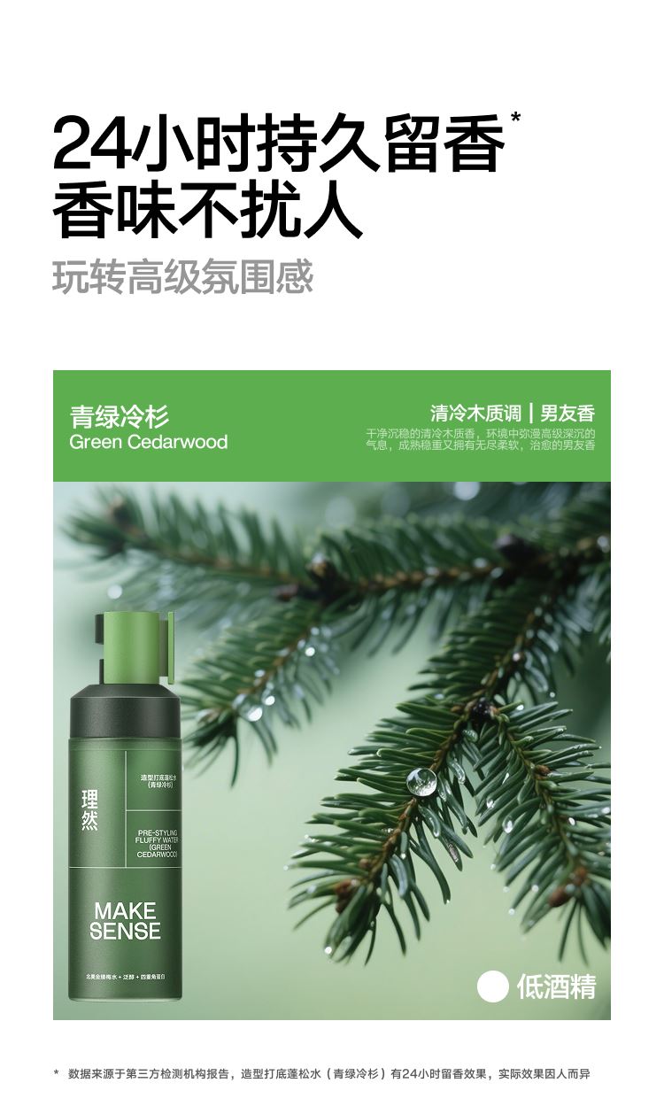 型号:打底造型蓬松水100ml 69码:6972761454634 规格:100ml/瓶 主要功效:零基础造型,随手一抓就蓬松 适用人群:懒人油头救星 产品卖点: 1、丰盈发量 秒变蓬松高颅顶 2、控油抗湿 改善油扁塌 3、养护发丝 无惧热损伤 4、清爽无胶不黏腻