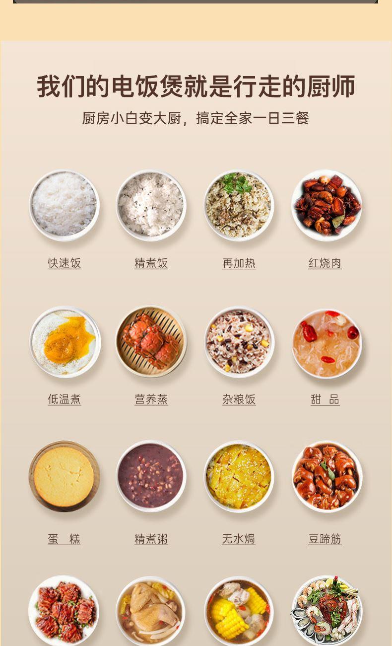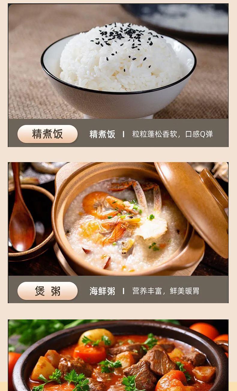 12 大功能菜单:煮饭、煮粥、煲汤、蒸菜、低糖饭、杂粮饭……12 种模式一键切换,想吃什么直接选,不用自己调火力和时间