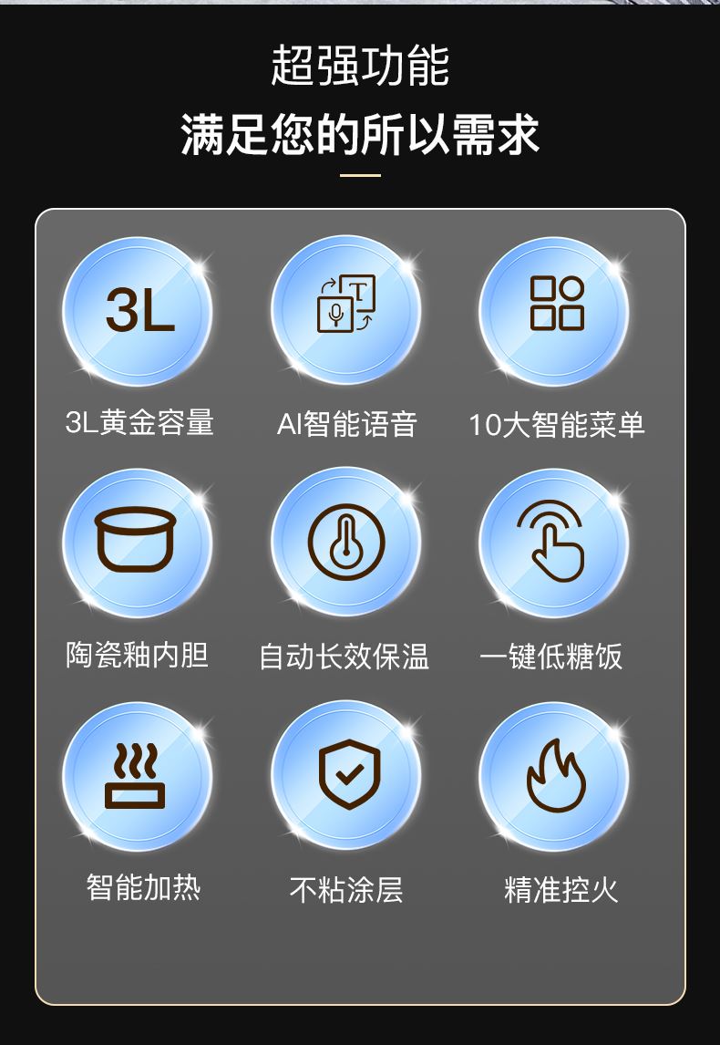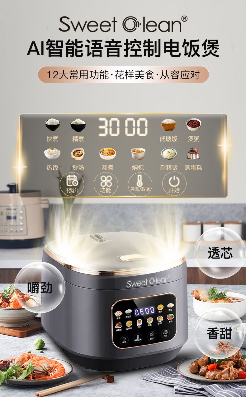 AI 智能语音操控:做饭手忙脚乱?喊一句 “开始低糖煮”,锅自动启动,不用腾出手按按钮。