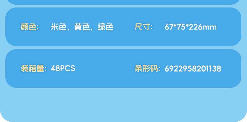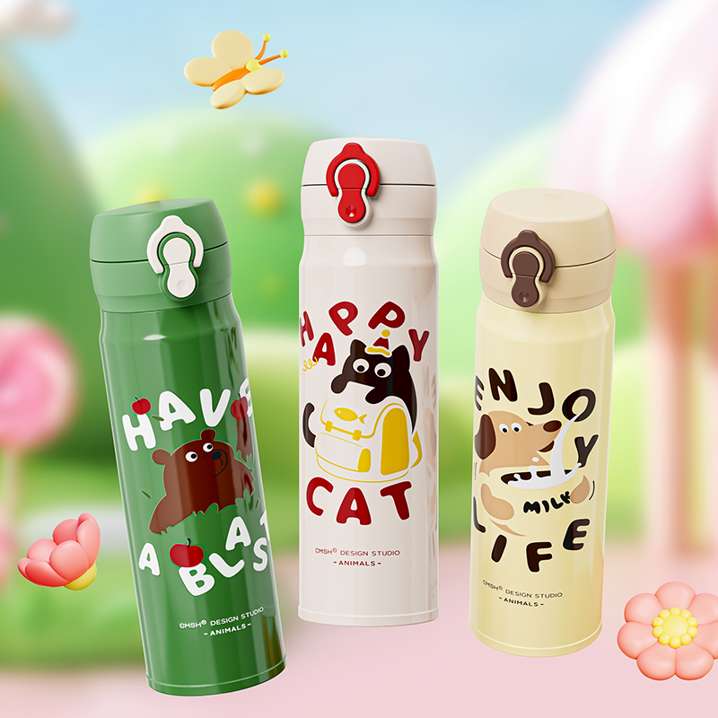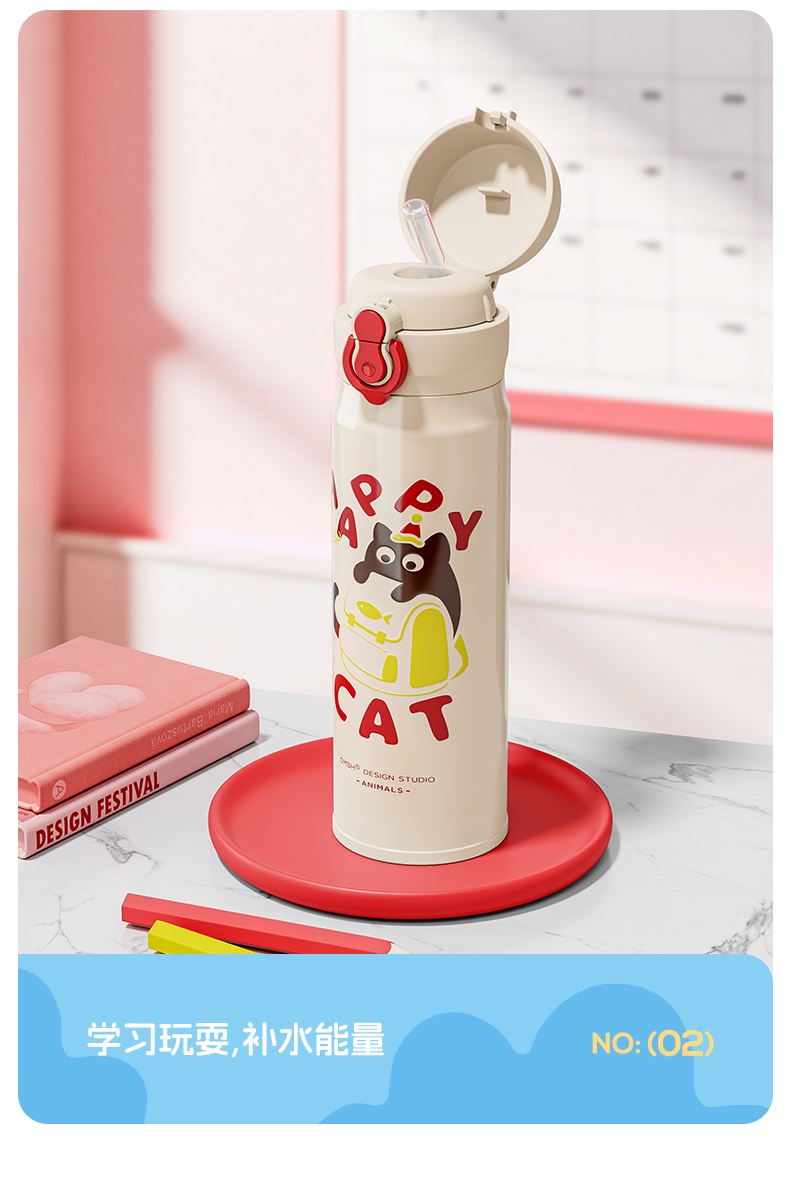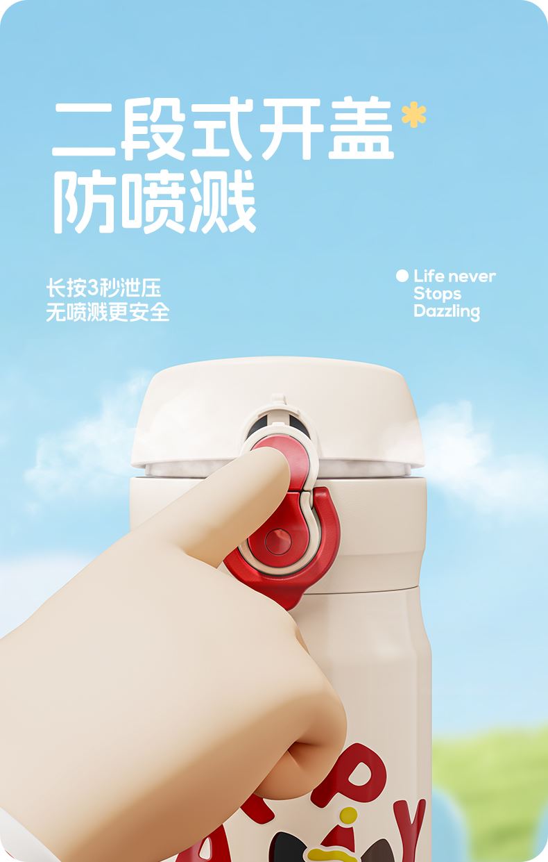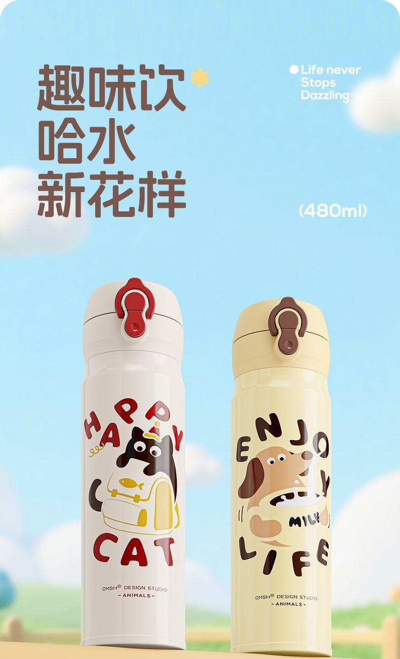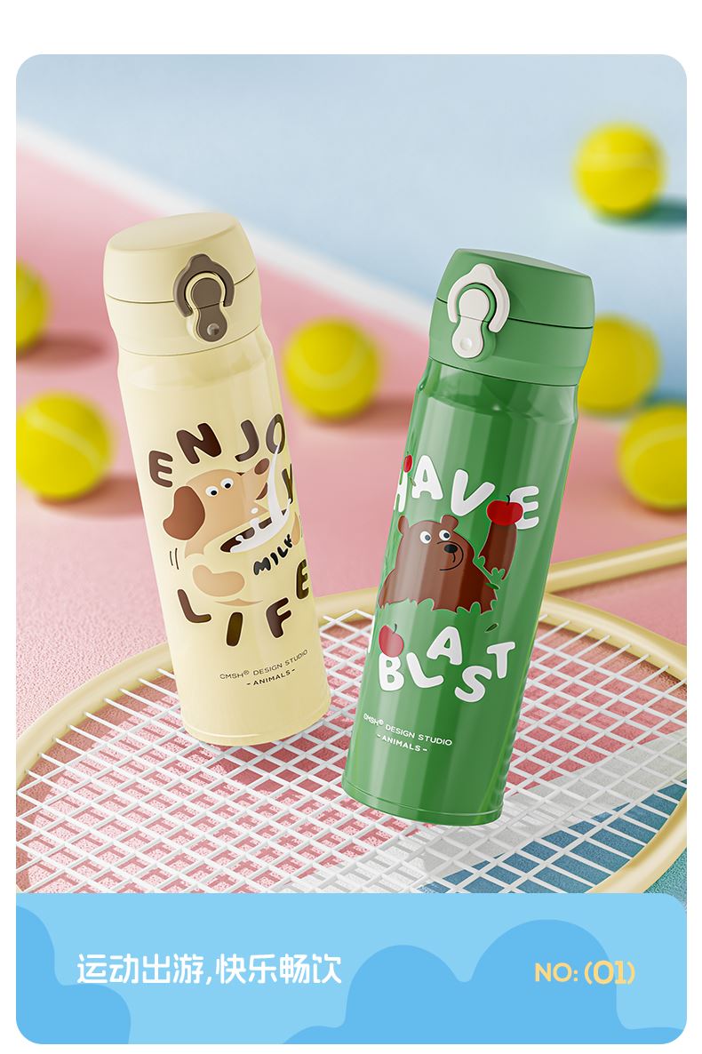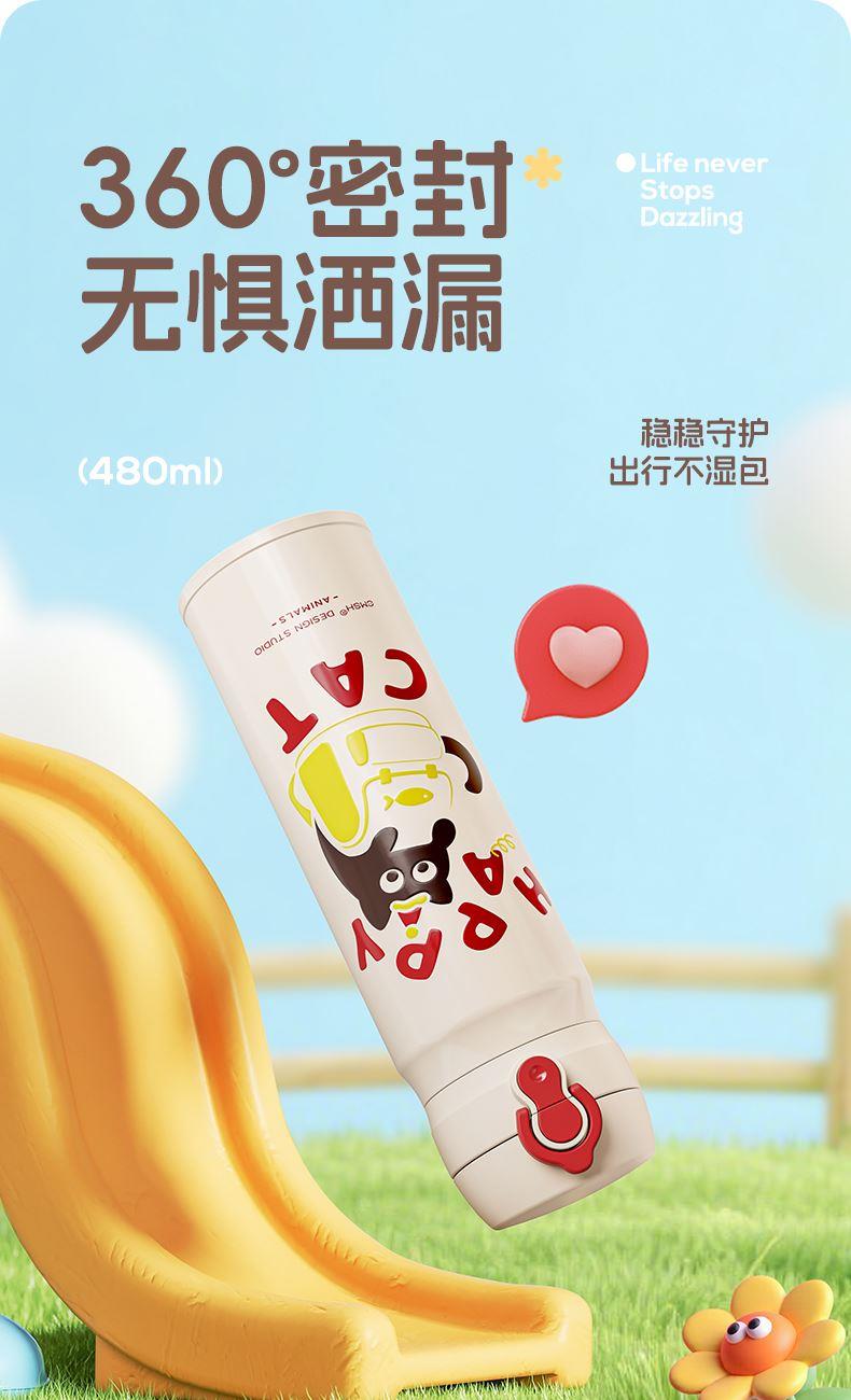 产品条码:6922958201138 内胆材质:316不锈钢 外壳材质:304不锈钢 杯盖材质:PP 密封圈材质:硅胶 产品容量:480ml 产品尺寸:67*75*226mm 产品净重:255g 产品颜色:米色,黄色,绿色 装 箱 数:48pcs 包装方式:独立彩盒包装 箱 重 量:15kg 产品特点: 原创涂鸦艺术 生动有趣 一键弹盖双饮 防喷溅设计 316钢材内胆 耐腐蚀更健康 纤细杯身 插包轻松无压力