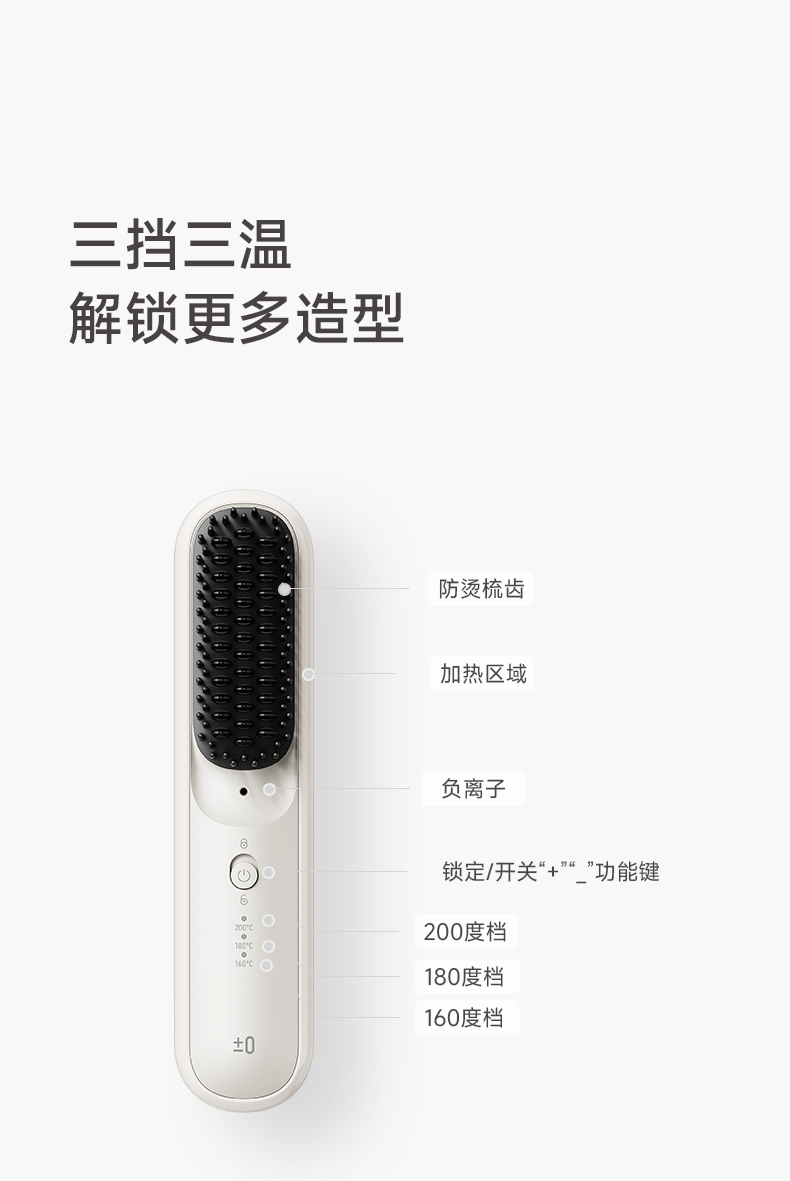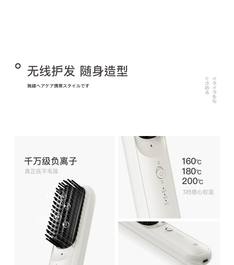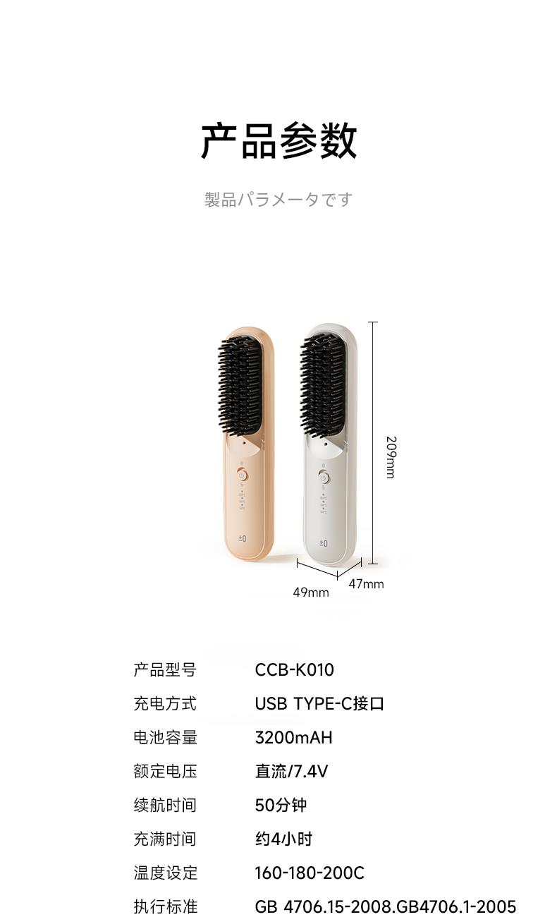 ±0日本正负零负离子无线直发梳CCB-K010
