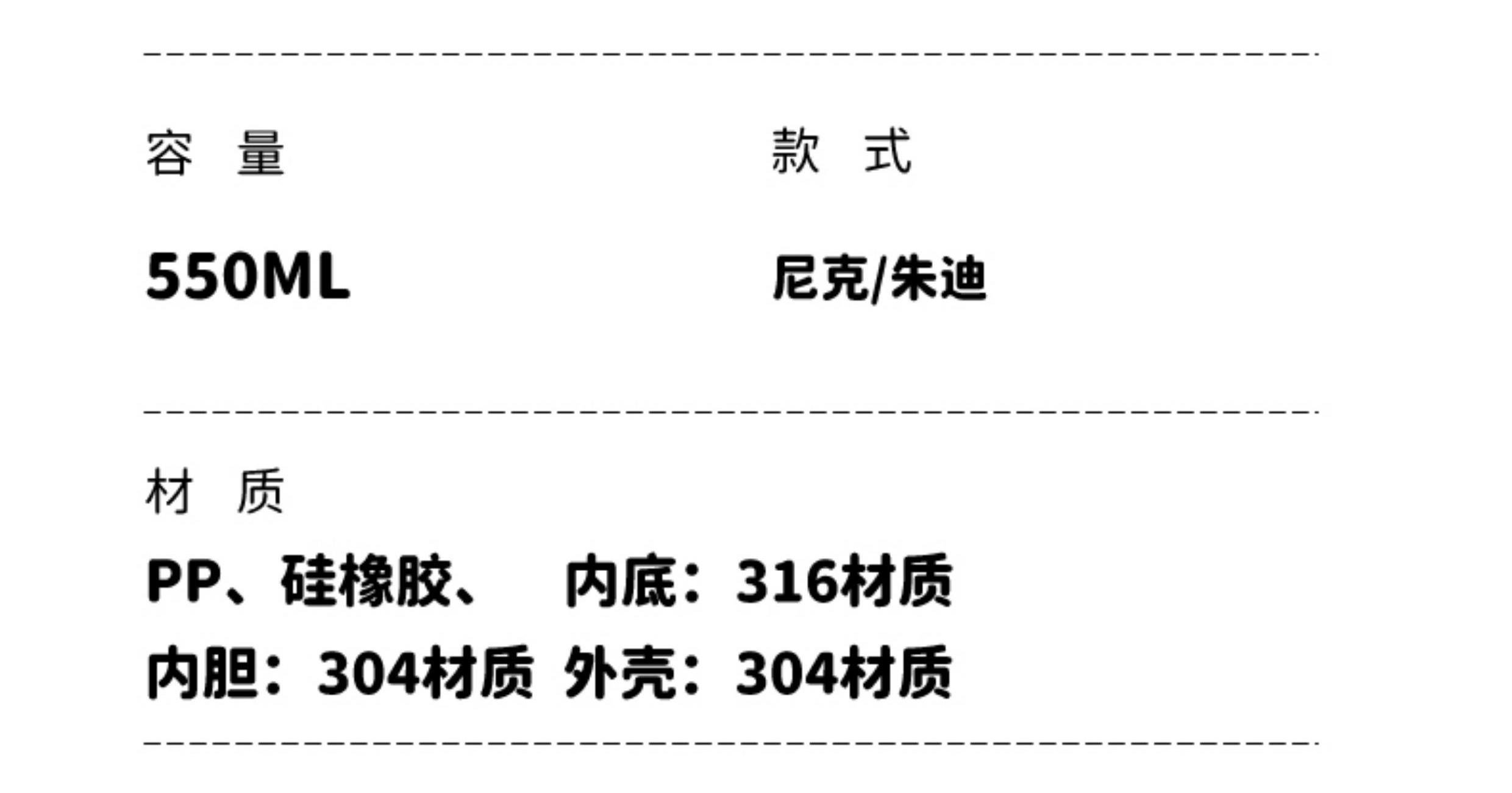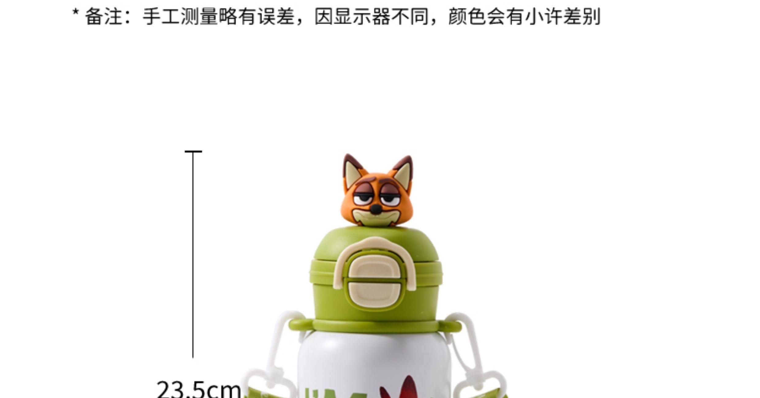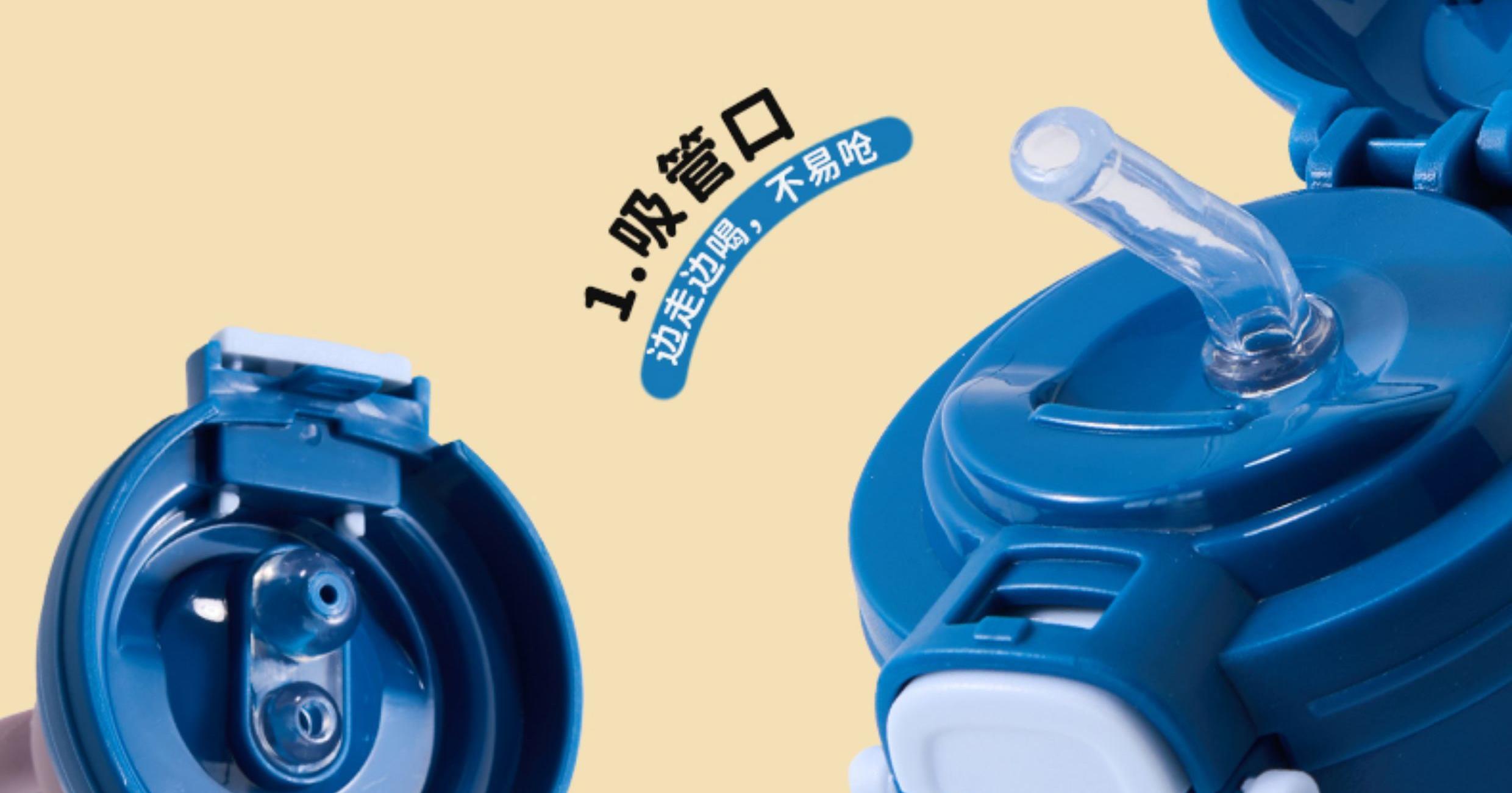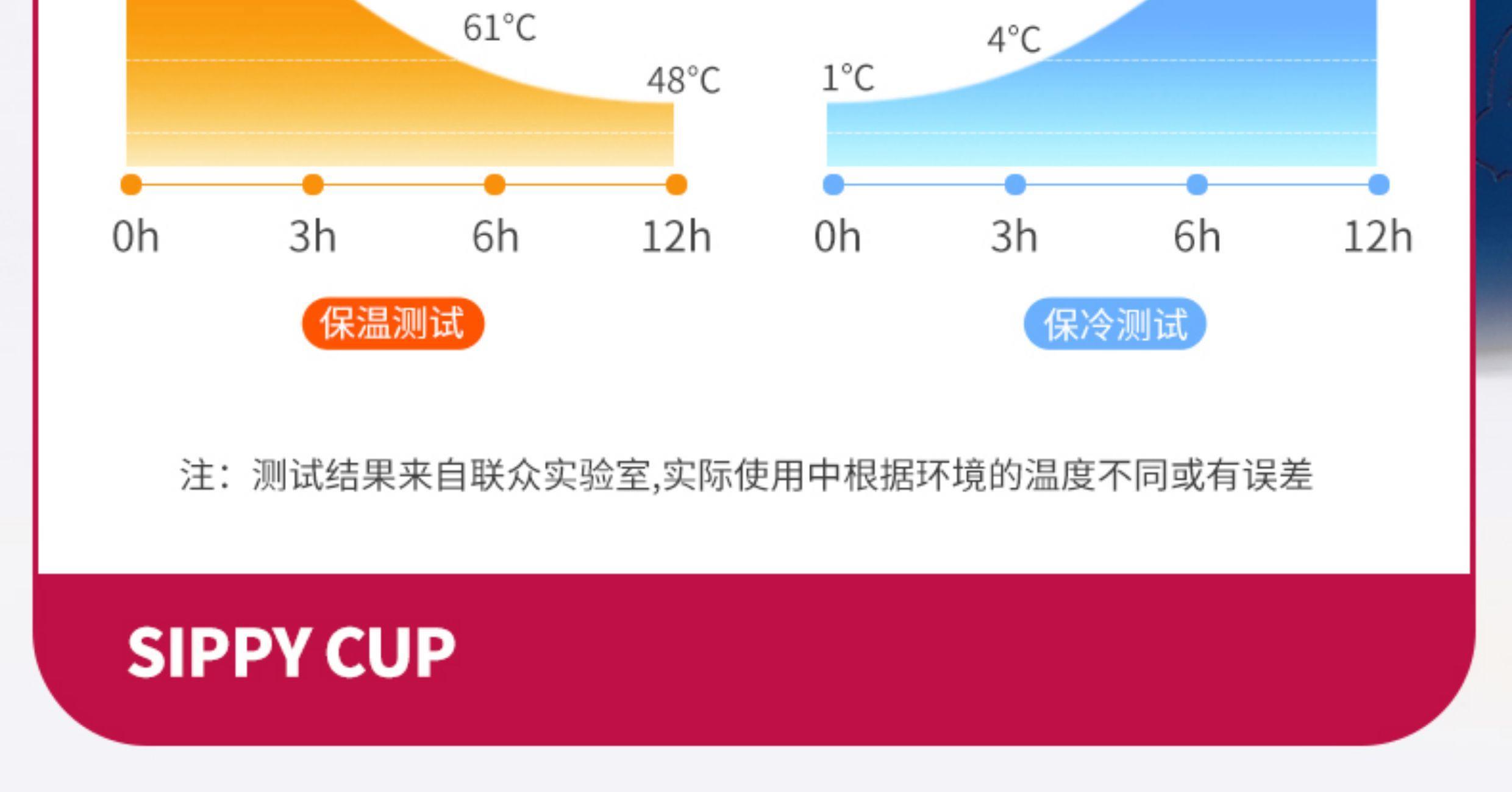 容量:550ml 尺寸:8.4*8.4*25CM 材质:PP、硅橡胶、内底:316材质 内胆:304材质 外壳:304材质 卖点: ①一盖双饮,吸管&直饮不设限 ②密封锁扣,防止误触 ③6层锁温,12小时长效护航 ④316不锈钢入口倍感安心,优选食物接触用不锈钢材质 ⑤杯碗分体式,多场景应用 ⑥圆润杯口、立体公仔、防滑杯垫、便携背带