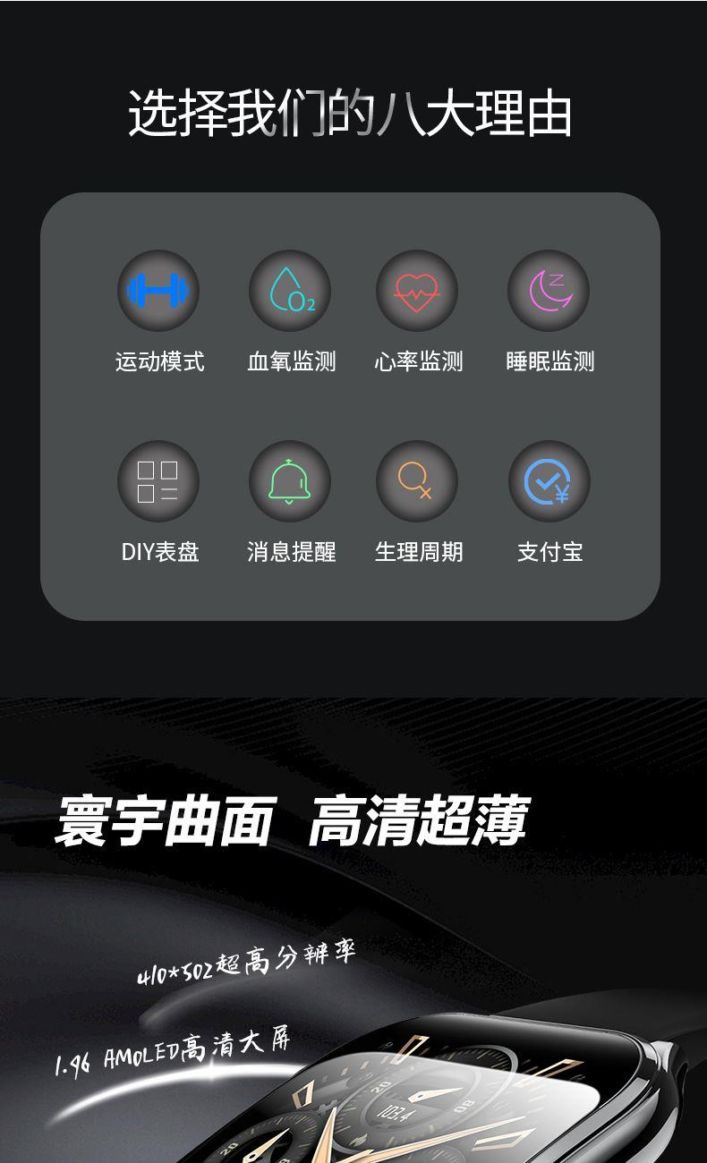 CPU:AB5691 128M 屏幕尺寸:1.952寸,410*502 AMOLED弧面高清屏 使用时间:2-5天 充电方式:磁吸座充 电池容量:200mAh 智能手表尺寸(mm):451*42*7.6mm 产品材质:上盖-玻璃,机身-锌合金,表带-防静电硅胶/真皮 产品净重: APP:FitCloudPro 防水等级:IP68 产品清单:手表+USB电源线+合格证+硅胶表带+皮表带+说明书+包装盒 1.952寸,410*502 AMOLED弧面高清屏、电池200mAh、心率/血氧监测、蓝牙通话、蓝牙音乐、睡眠监测、来电接听、短信提醒、社交APP消息提醒(支持微信,QQ)、闹钟提醒、久坐提醒、多种运动、翻腕亮屏、寻找手环、远程拍照、勿扰模式、表盘自定义、云端后台海量表盘、本地语音功能控制、AI表盘(根据描述,生成表盘图片)、支付宝、文心一言、NFC、AI问答、女性健康、音乐控制、天气等;