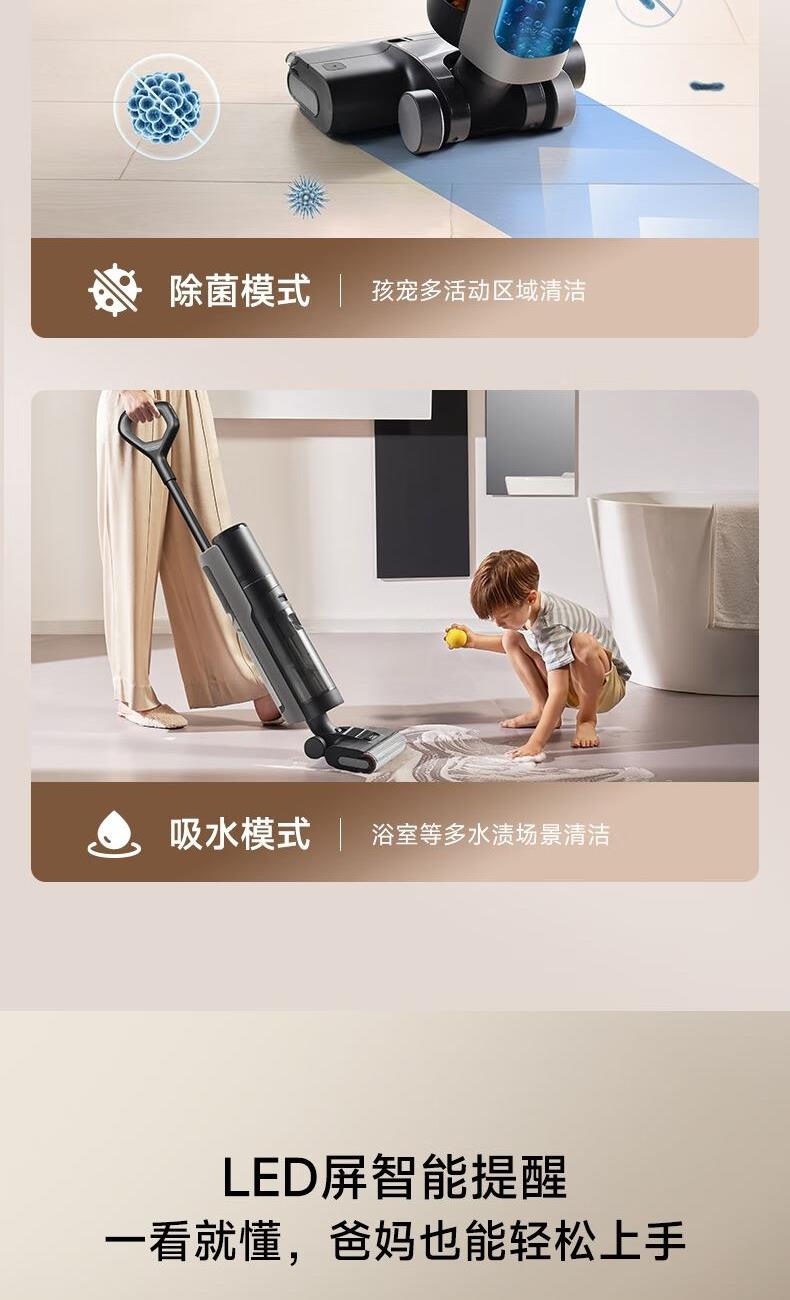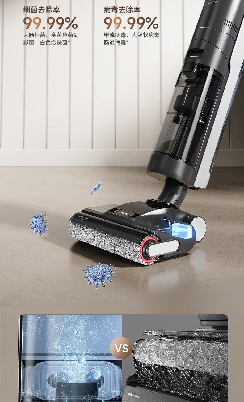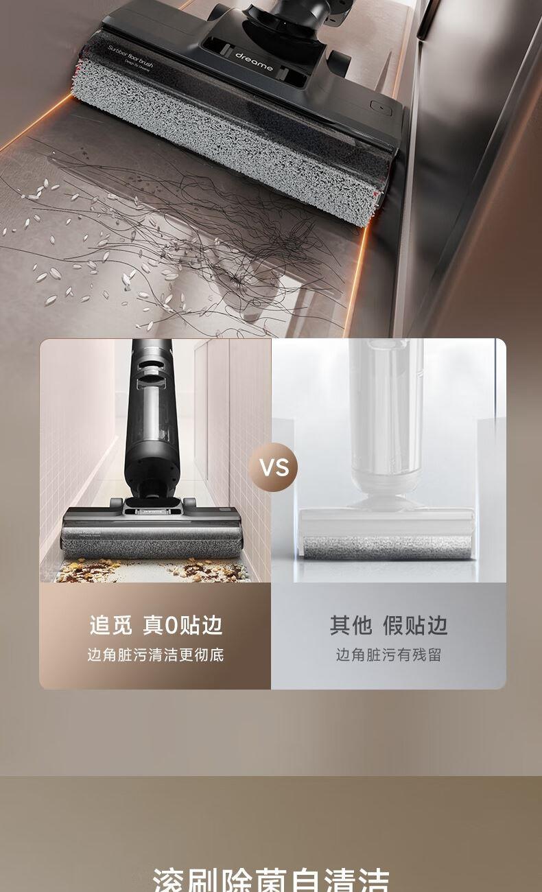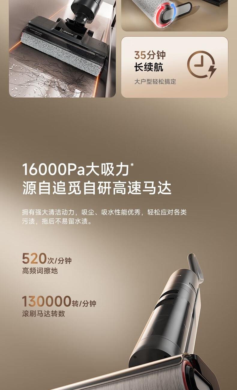 双重防缠毛,双侧0贴边, 澎湃大吸力,除病毒 16000Pa大吸力,35分长续航 滚刷双向灵活转动