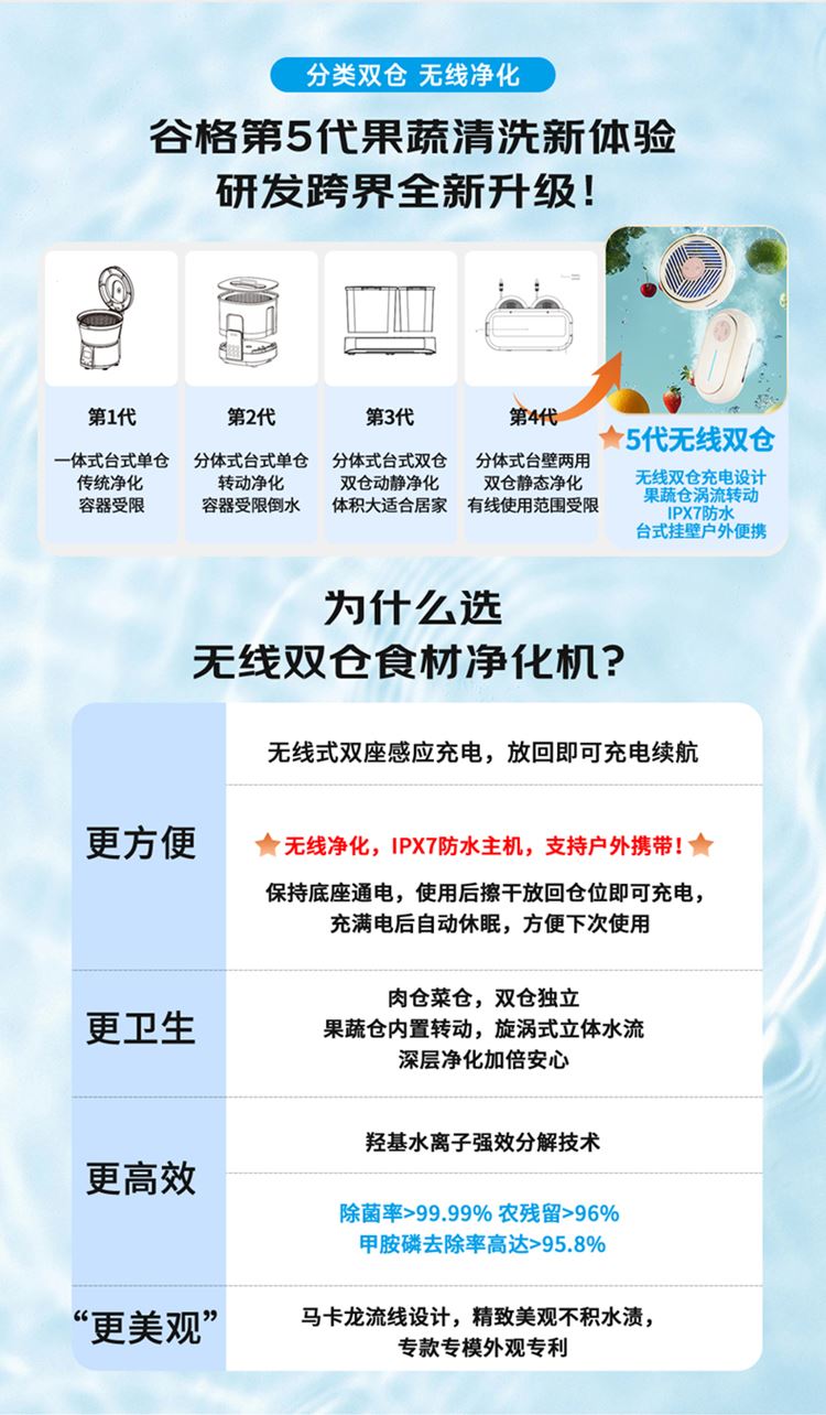 谷格(GUGE)无线双仓食材净化机G39H
