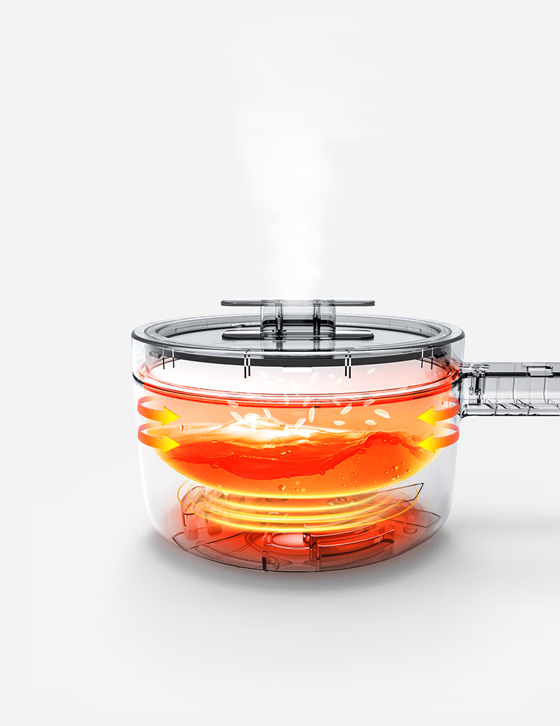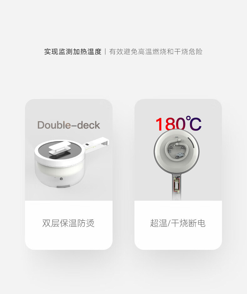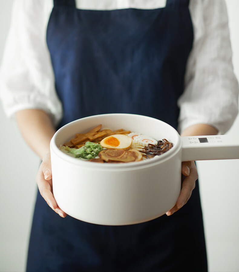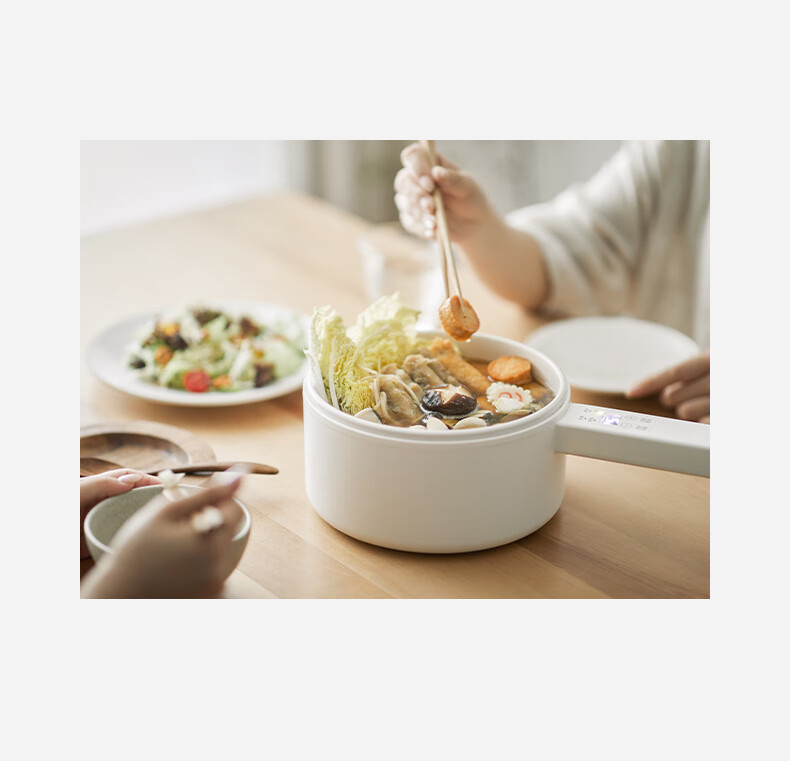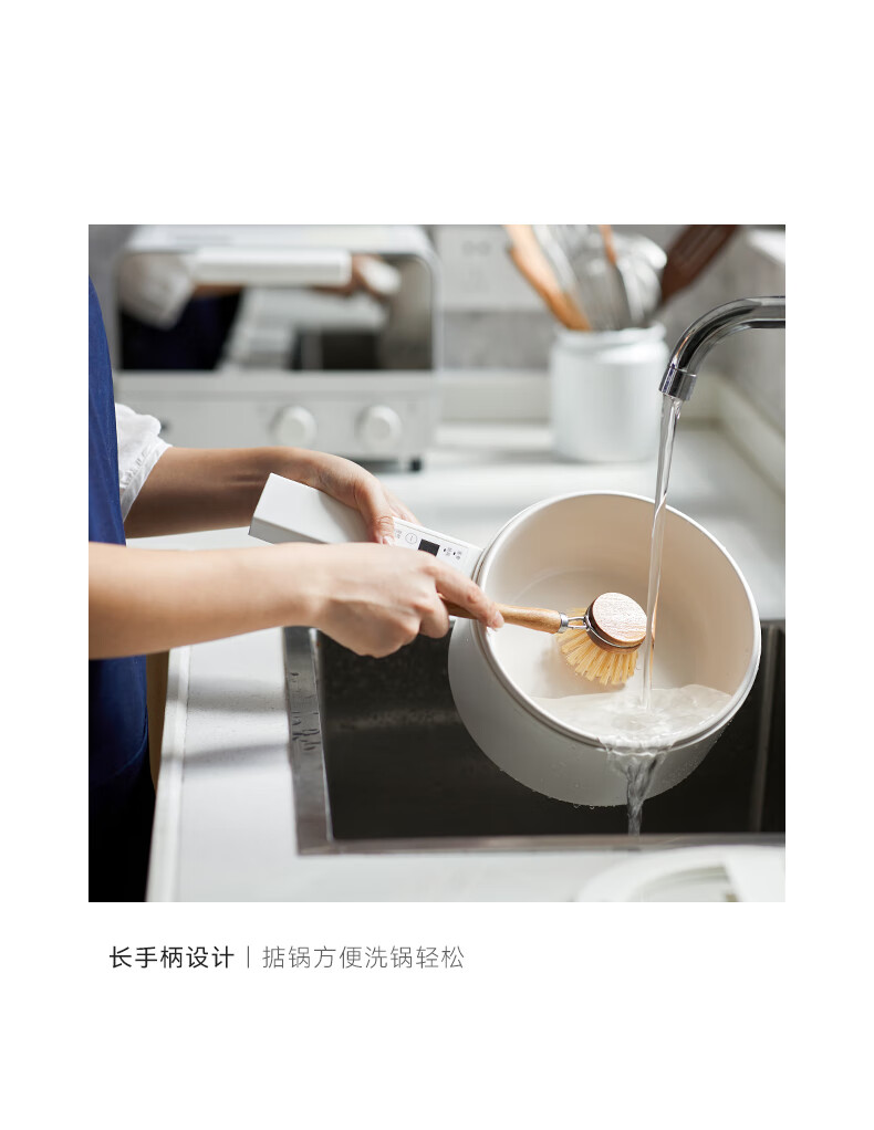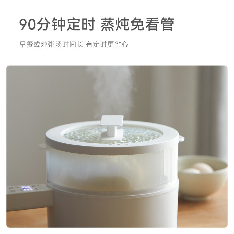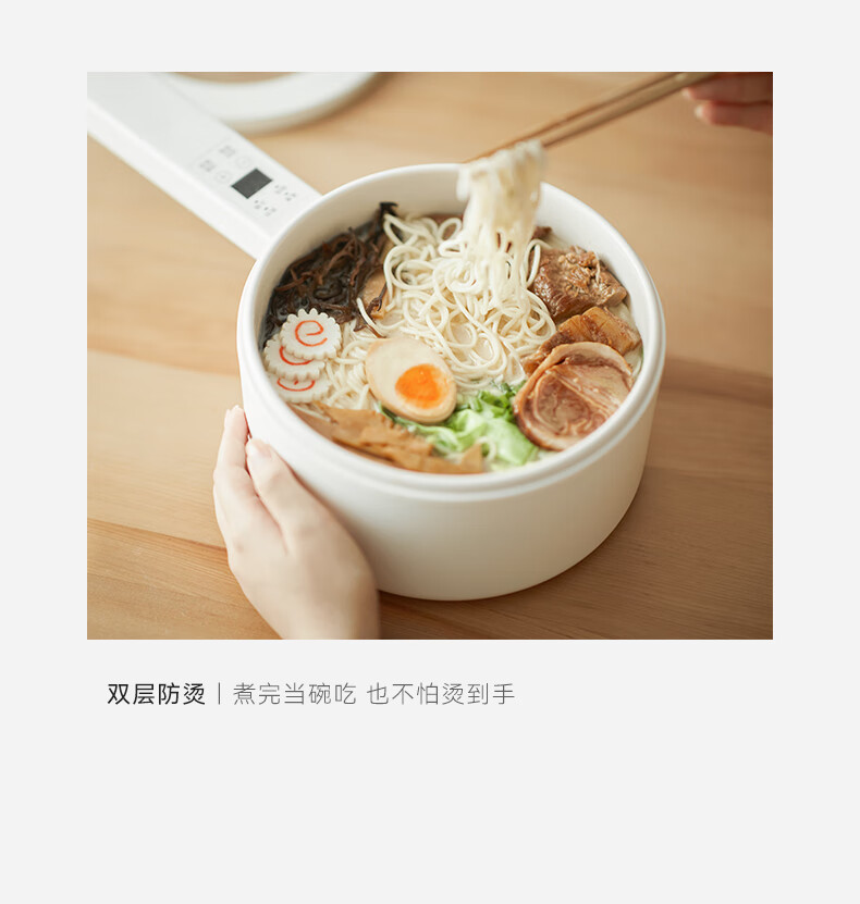 智能多功能电饭煲: 颜色:陶白 容 量:2L 重量:2.6kg 额定功率:700W 产品尺寸:376*215*138mm 包装尺寸:462*267*158mm 1. 陶瓷釉内胆,硬度8H 无惧钢丝刷 2. 21cm大口径,锅深7cm,翻炒从容 3. 360°整圈发热,温度稳定,防干烧自动断电 4. 上蒸下煮,高透明食品级PP蒸笼(耐温180度)