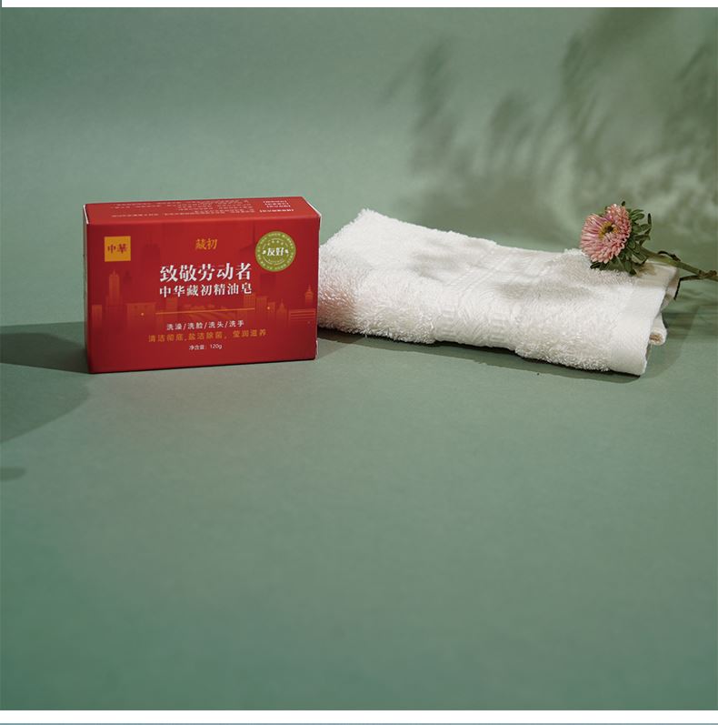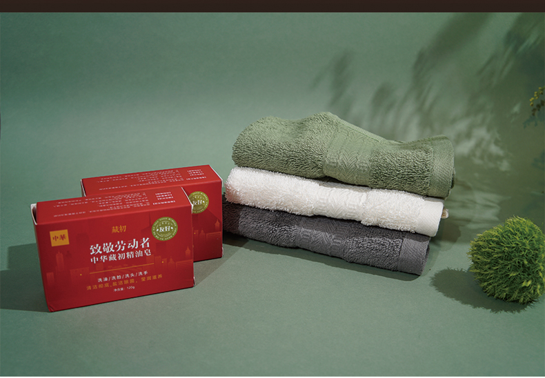 礼盒产品说明: 埃及长绒棉方巾33*33cm 劳动者皂 120g*2