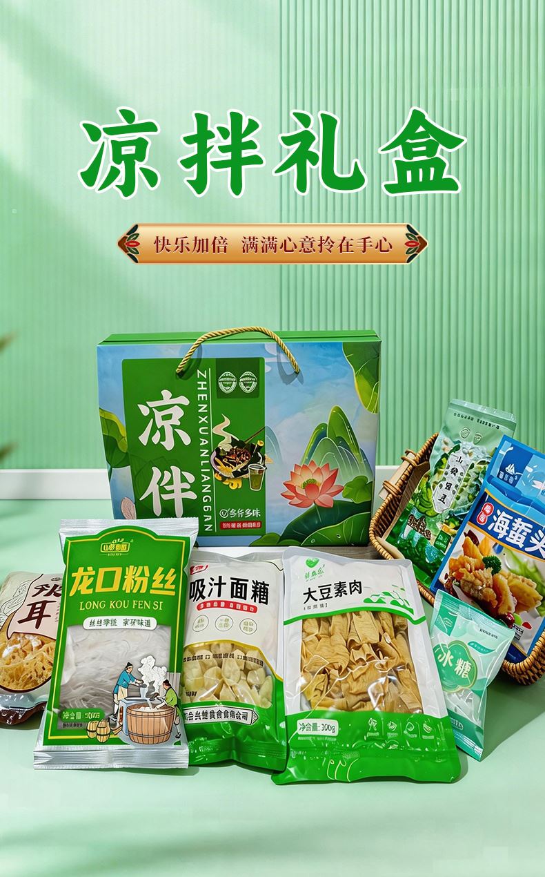 山野源粮凉拌礼盒海蜇头大豆素肉粉丝大麦茶