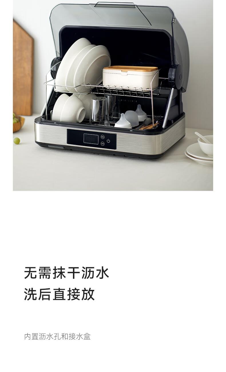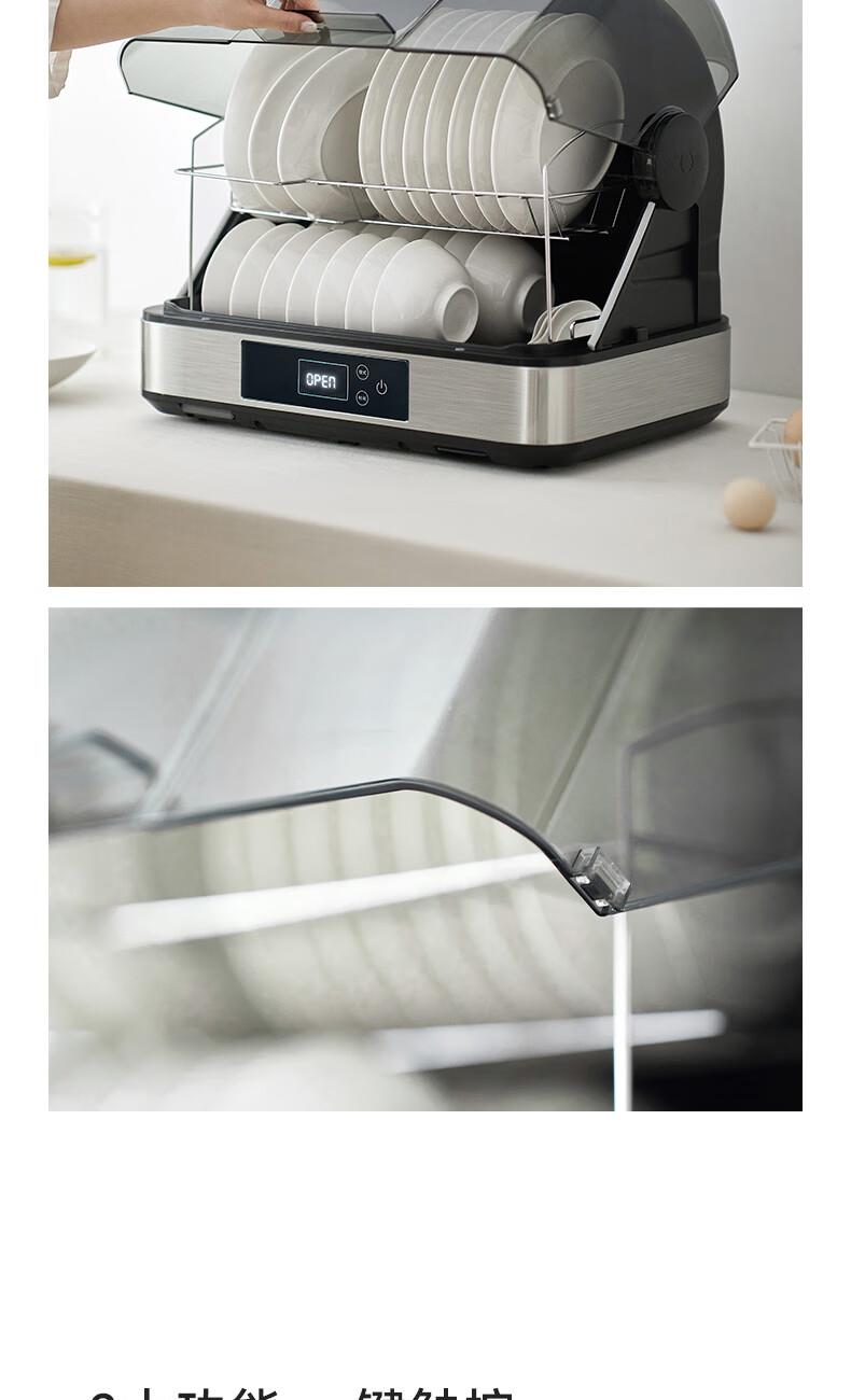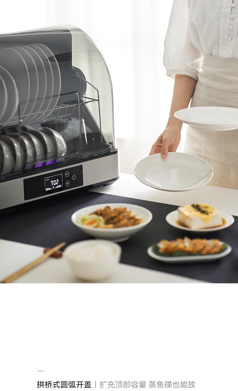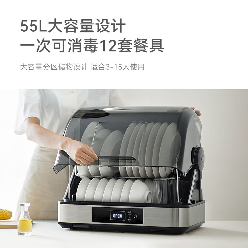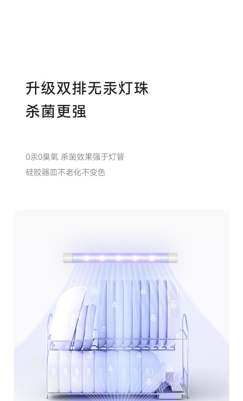 消毒柜:颜色:陶白 容量:55L 重量:6.5kg 额定功率:300W 产品尺寸:507*383*450mm 包装尺寸:570*440*515mm 1. 一台集消毒、烘干、储物的多合一消毒柜 2. 升级紫外线无汞灯珠 3. 0汞0臭氧消毒效果强于灯管,硅胶器皿不老化不变色不挑材质,母婴用品放心用