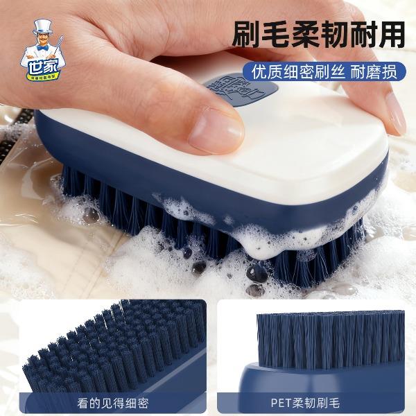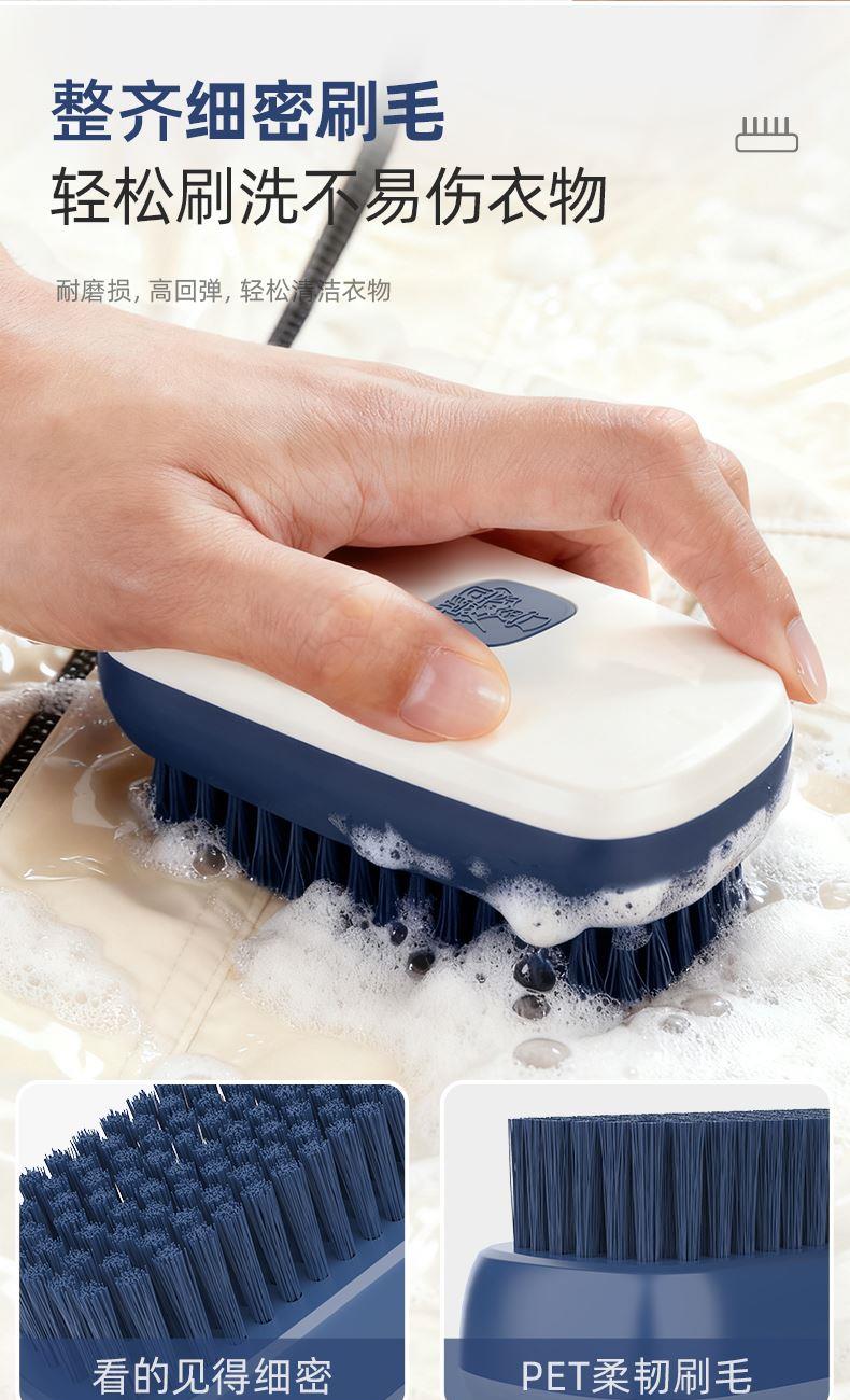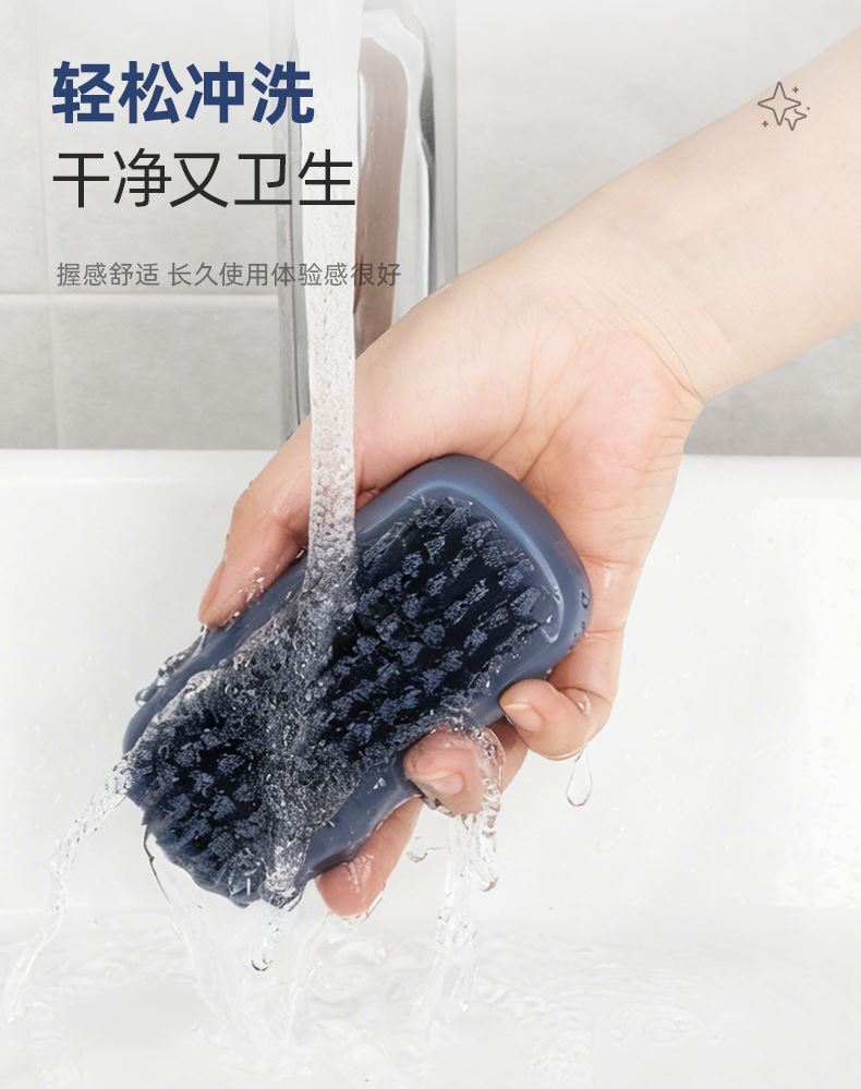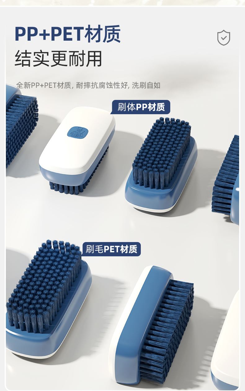 抓握圆润饱满大小刚刚好,与掌心更贴合,使用更轻松 整齐细密刷毛轻松刷洗不易伤衣物 耐磨损,高回弹,轻松清洁衣物 全新PP+PET材质,耐摔抗腐蚀性好,洗刷自如 起泡丰富加速去污 给您事半功倍的清洁体验 加宽加厚刷面清洁更省力,刷丝密实,受力更均匀省力 告别手搓清洁实力派 轻轻一刷,衣物焕然一新