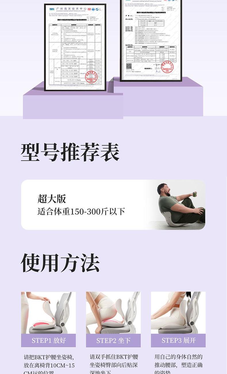 产品尺寸:477*373*337mm 产品材质:PP合成树脂/布(聚醋纤维) 适合体重:体重150-300斤 坐套面料:聚酯纤维 坐套尺寸:490*330mm 适宜人群:坐姿不正确人群,上班族、学生、教师等久坐人群,有跷二郎腿习惯人群, 希望拥有正确坐姿人群,超大版更适合体型偏大人群。