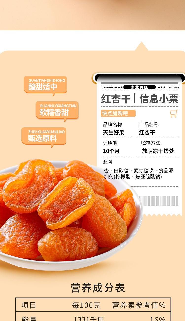 天生好果红杏干200克 条码:6957292910088 保质期:12个月