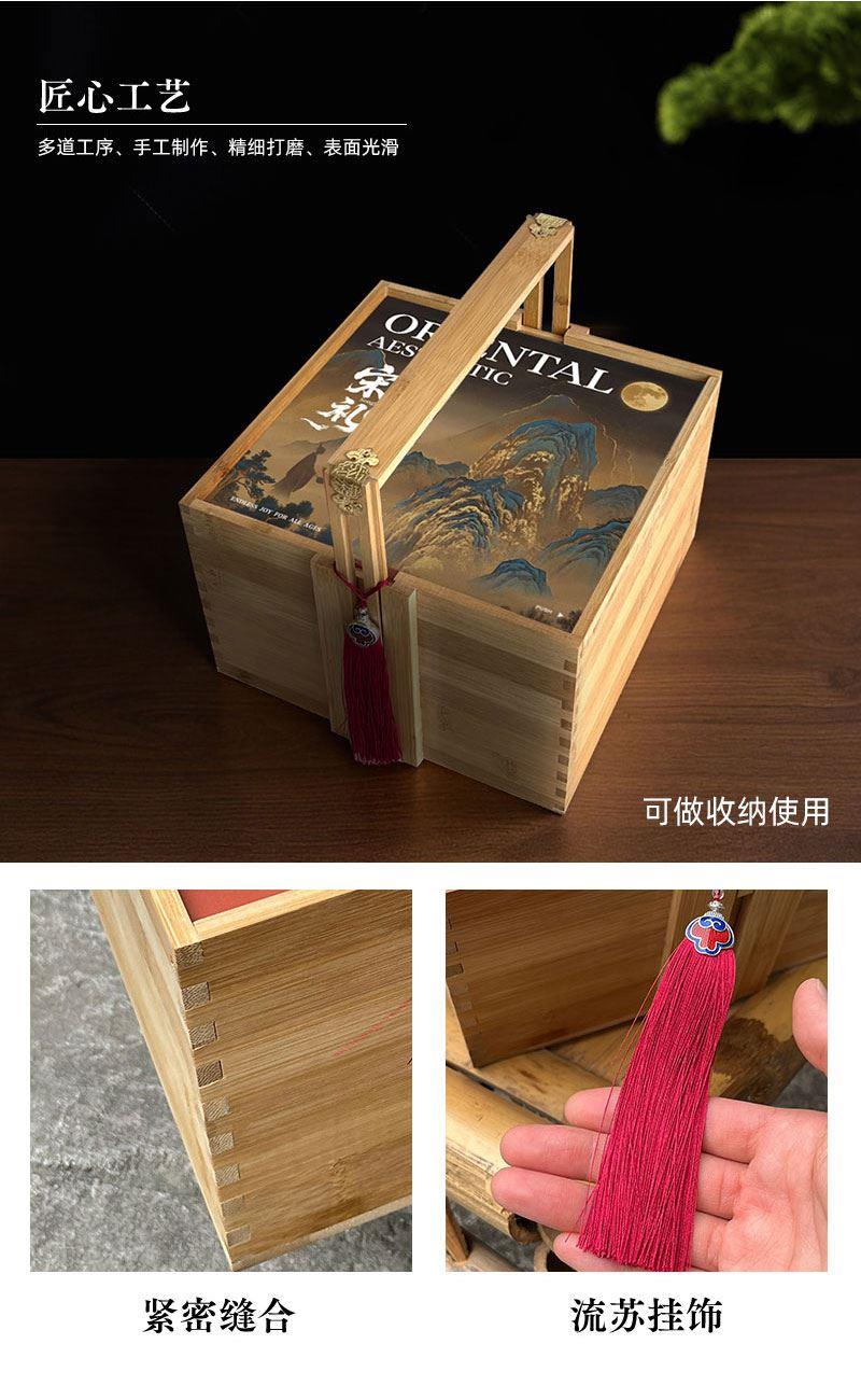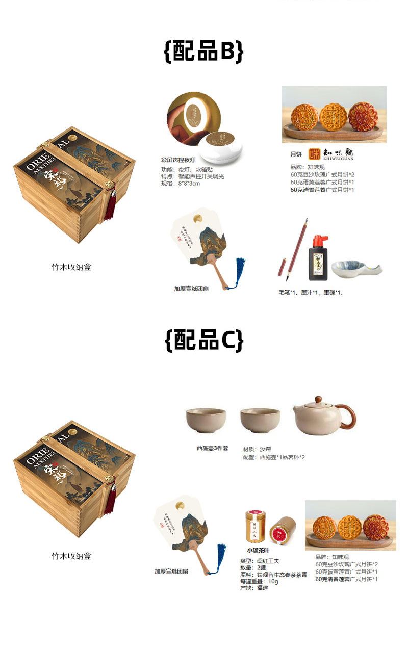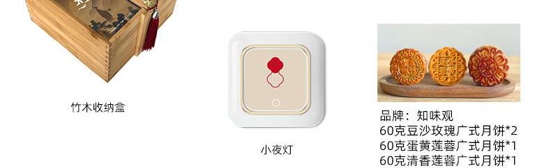 礼盒参数: 食盒*1、月饼4个、古风扇面*1、声控夜灯、 毛笔、墨碟、墨汁 详细介绍: 礼盒尺寸:23.5*23.5*15cm 套装重量:1626g/套 外箱尺寸:53.2*49.2*33cm
