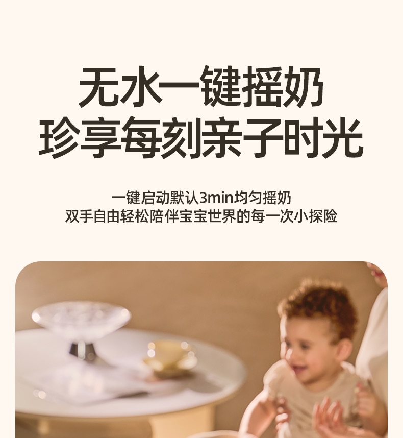 主要材质:PP+硅胶 电压:220V 功率:150W 颜色:里米尼白 裸机:236*135*164 内箱:276*170*212 1、两档转速、多档时间,科学摇奶无气泡 2、记忆摇奶,省心省力 3、PTC立体热风,无死角暖奶 4、双NTC控温,恒温暖奶 5、暖奶材质可选,满足市面上大部分材质 6、48H保温,泡奶无需等待 7、53-75mm口径,不挑奶瓶 8、柔光小夜灯,夜间泡奶不摸黑