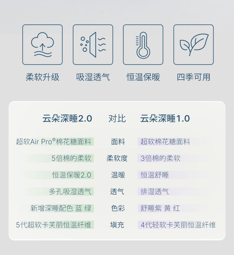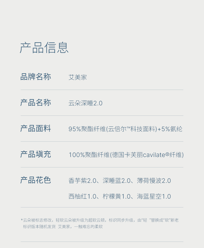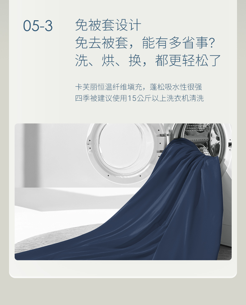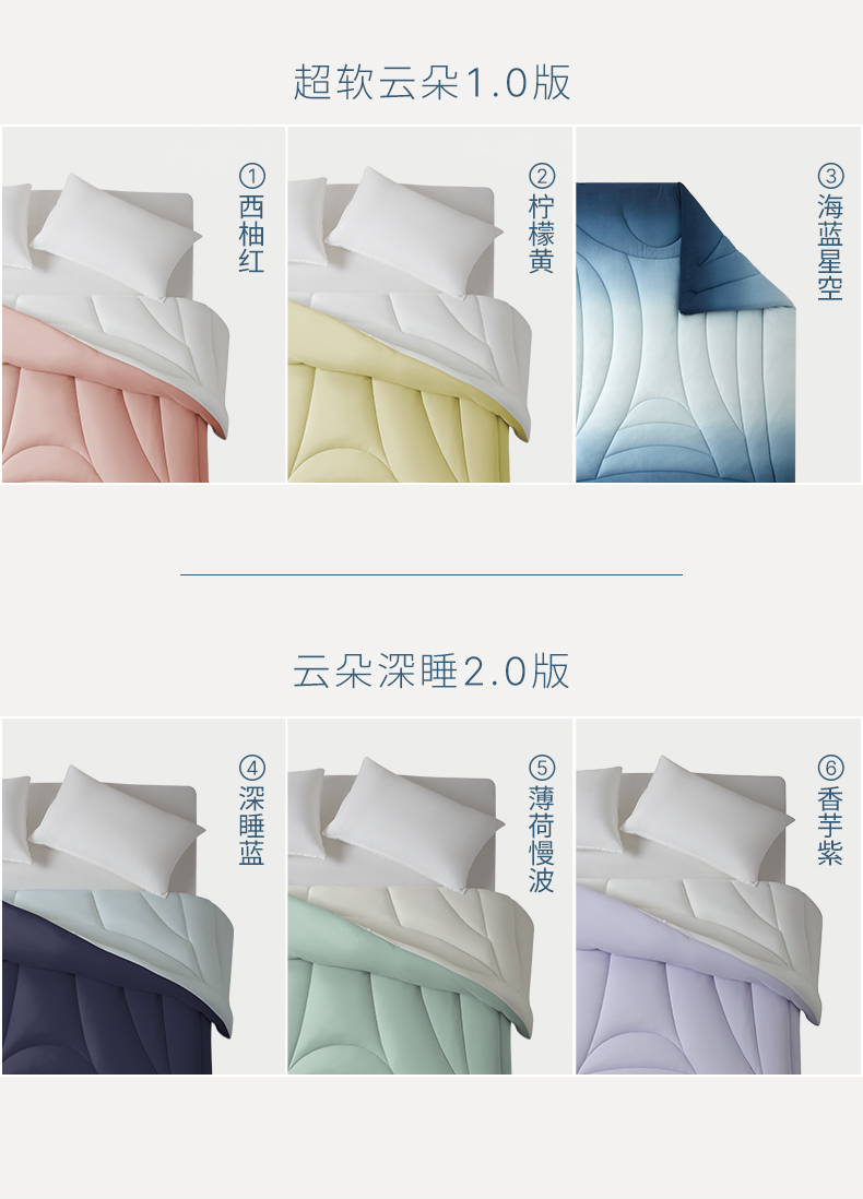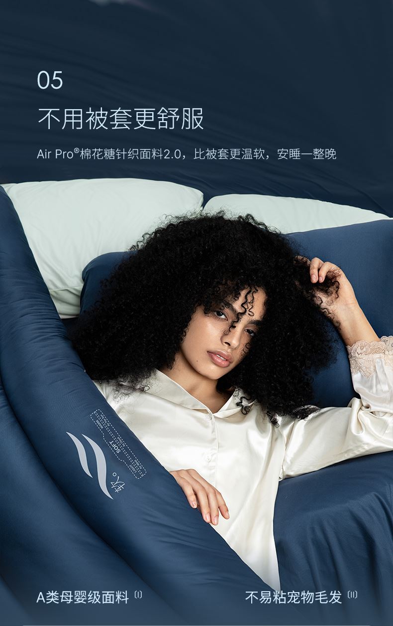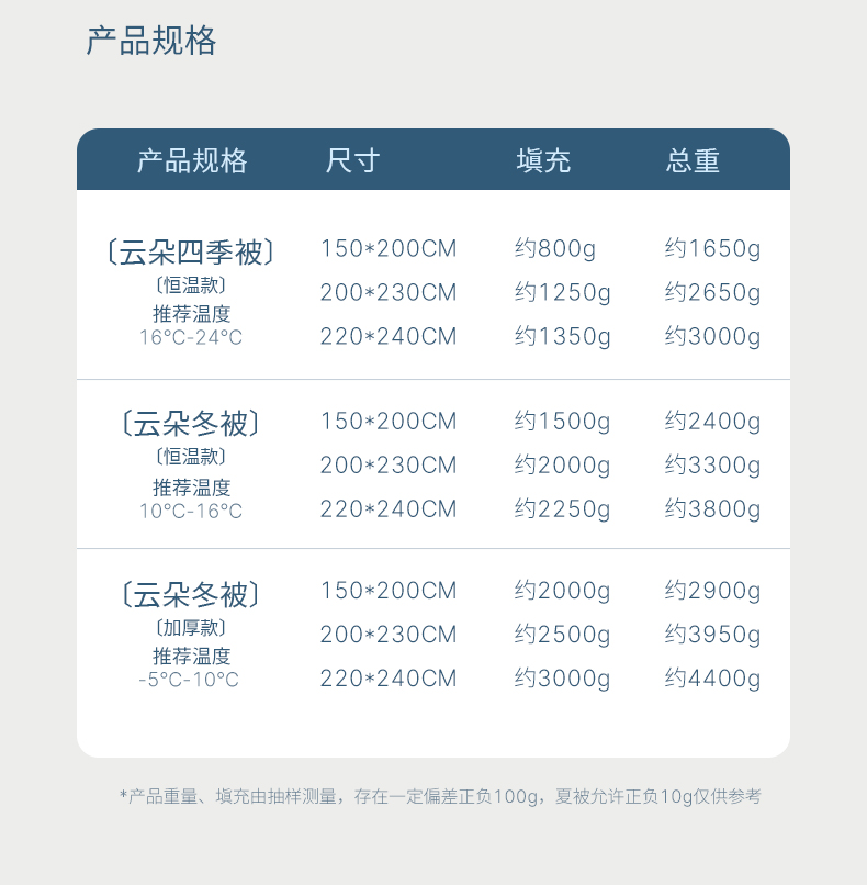 面料:聚酯纤维(50D超细纤维) 填充:聚酯纤维(Cavilat德国恒温纤维) 规格:200*230cm 填充克重:1250g 德系卡芙丽控温技术达到锁温效果,贴合不漏风,保持一个28°的恒温微睡眠气候 人体工学绗缝更贴合身体以及人体曲度和高度落差,起到良好的包裹作用,三边包裹人体 A类母婴级安全,0荧光剂,0甲醛,0芳香胺,贴肤裸睡更安全 比棉花更轻盈 比蚕丝更蓬松