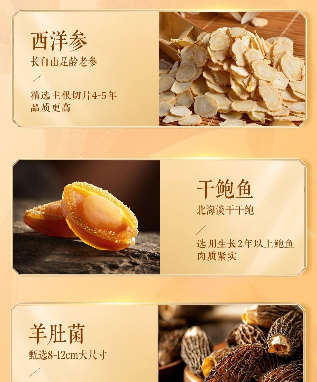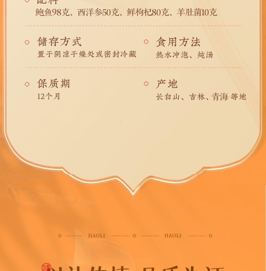 配置:鲍鱼98g、西洋参50g、枸杞50g、羊肚菌10g 商品规格:248g/盒 产品尺寸:305*305*97mm 保质期:12个月 税率:13% 京东自营销量好评1w+,源头工厂,支持项目授权,项目保护
