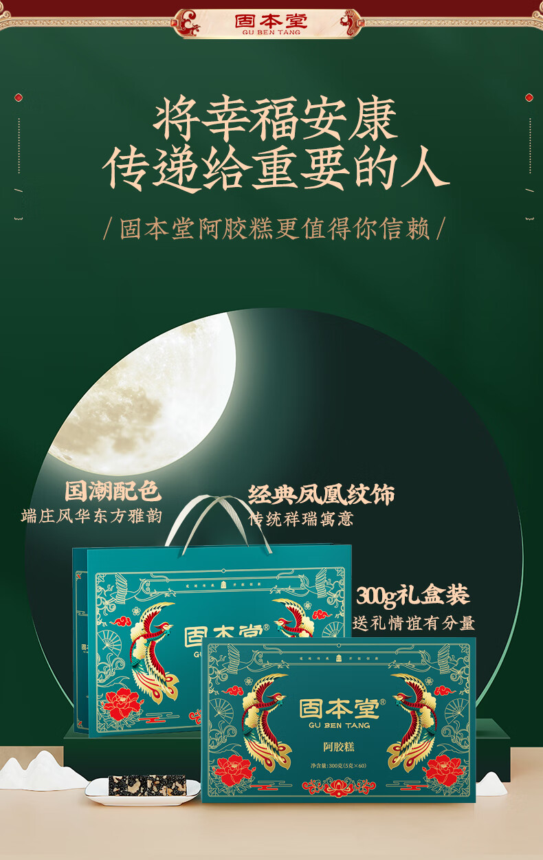 固本堂传统口味阿胶糕300g礼盒