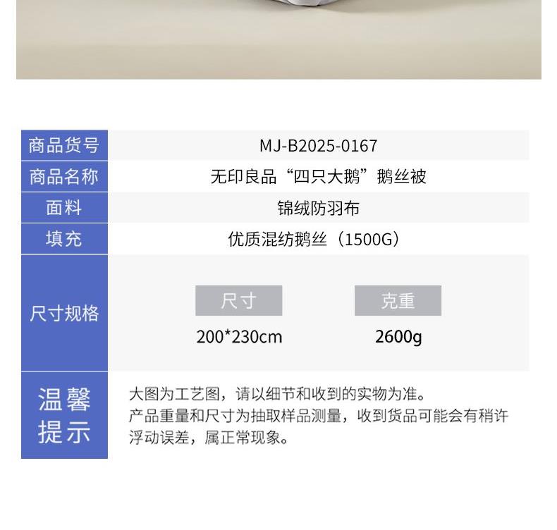 无印良品“四只大鹅”鹅丝被MJ-B2025-0167