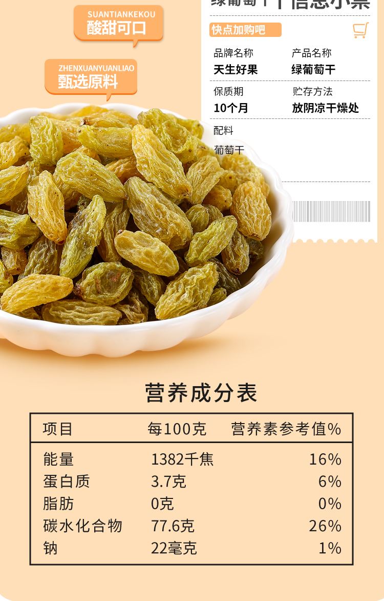 天生好果绿葡萄干200g罐装新疆吐鲁番特产蜜饯果干休闲零食
