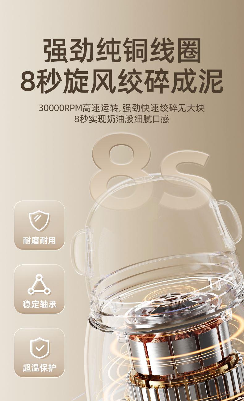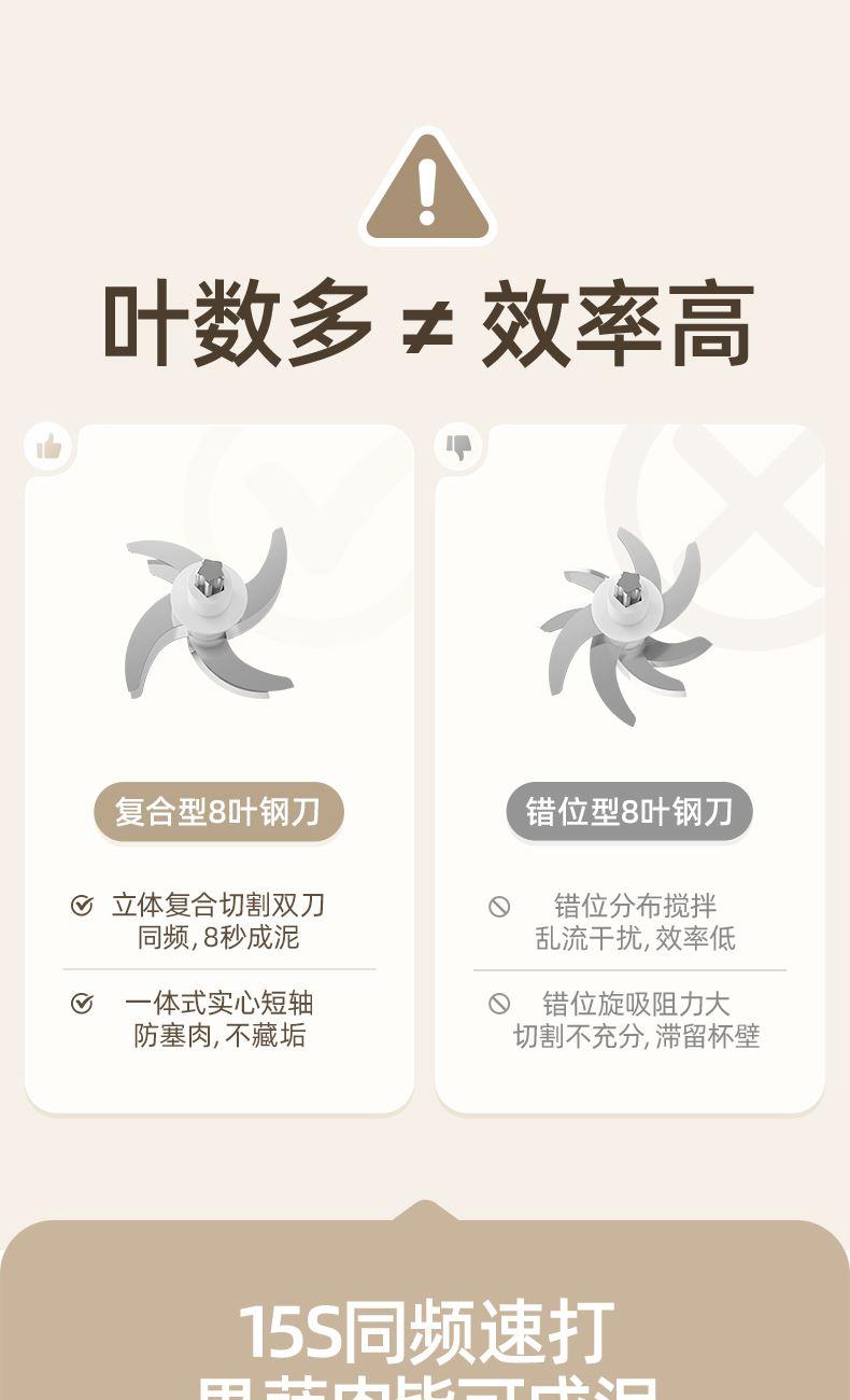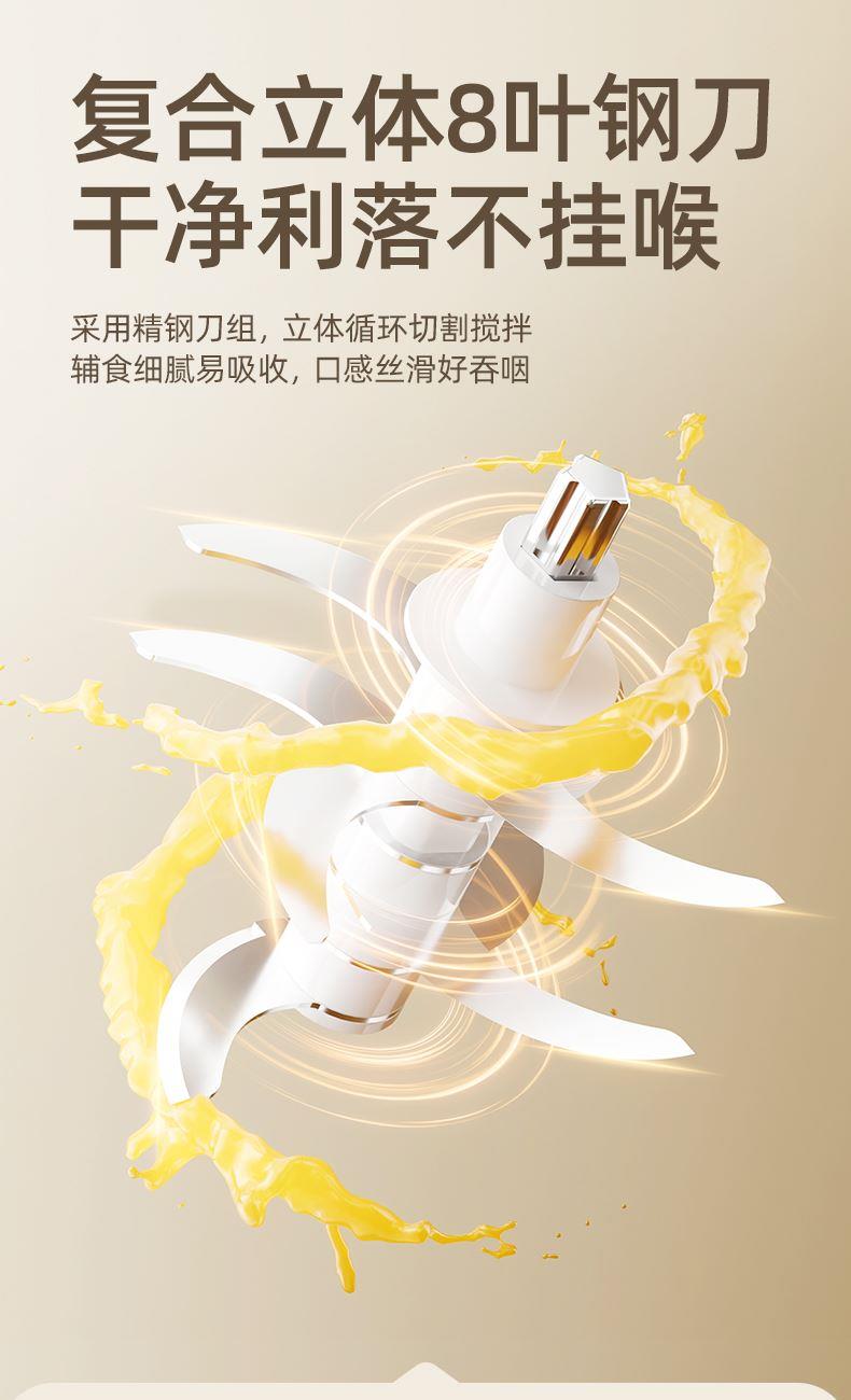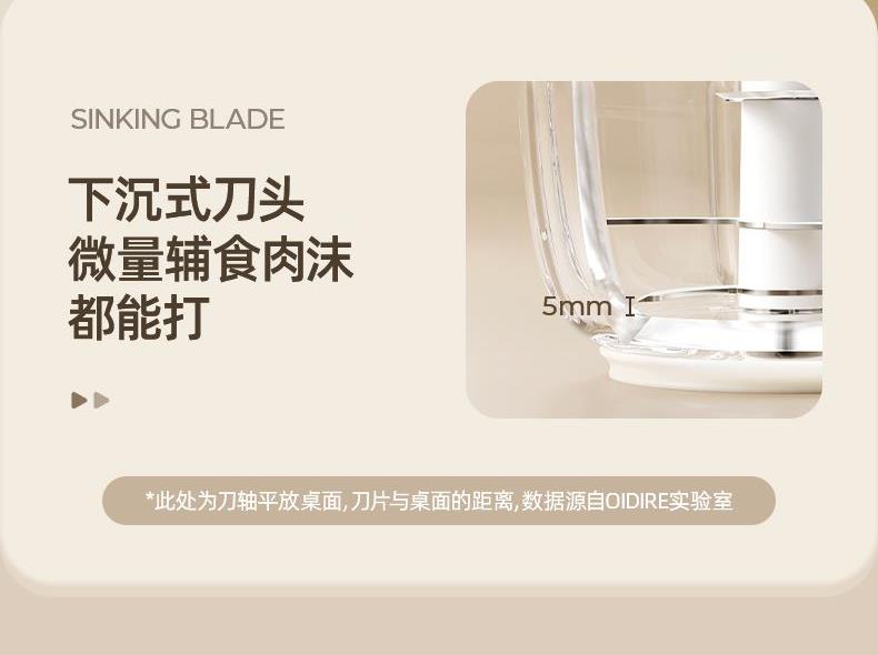 主要材质:PP+高硼硅+304 电压:220V 功率:200W 容量:300ml 1、小分量辅食,0、3L刚刚好 2、8叶刀片,锋利绞碎,无死角绞打 3、16条立体扰流筋,充分绞碎更细腻 4、高硼硅玻璃,食材有保障,高温消毒也不怕 5、底部防滑杯垫,稳固站立不易掉 6、下压式点动开关,操作简单方便。
