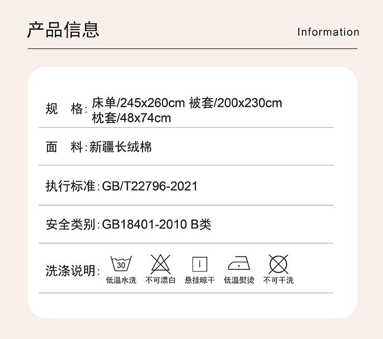 床单:245x260cm 被套:200x230cm 枕套:48x74cm 【面 料】新疆长绒棉 (100支长绒棉) 产品特点: 1. 面料选用100支新疆长绒棉,棉中奢品,高支高密,细腻丝滑,柔软舒适; 2.精美刺绣设计,大气磅礴,彰显至高奢华感; 3.活性印染工艺,色彩明艳,不易褪色; 4.床单宽贴边,品质。