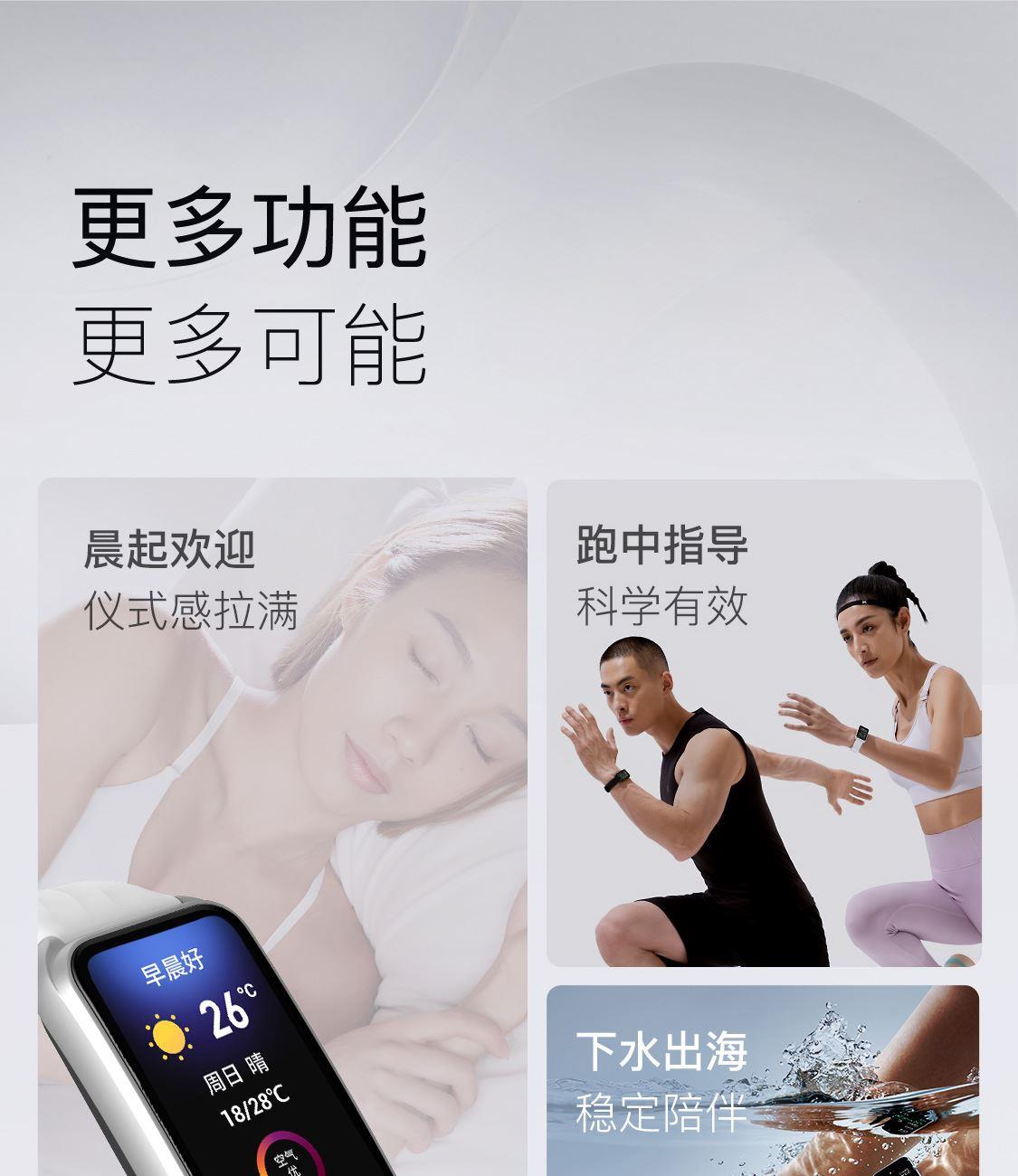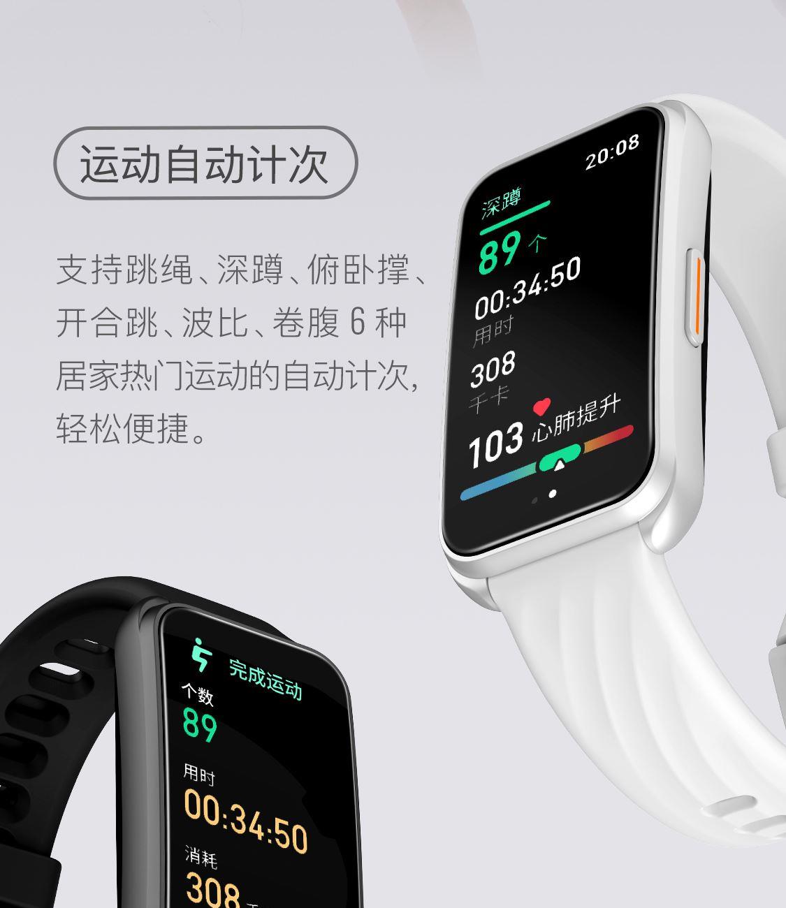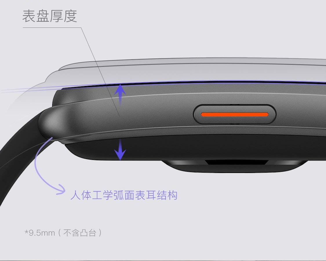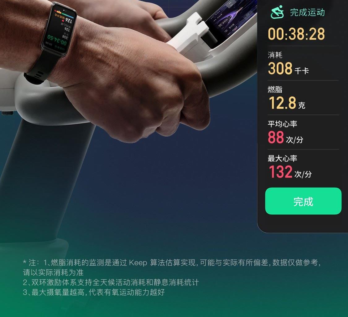 1.58"AMOLED 大屏 9.5mm纤薄天花板326视网膜级 PPI 心率实时监测 血氧监测 16000+官方课程互动 工作环境:0-45度 满电可续航:14天;