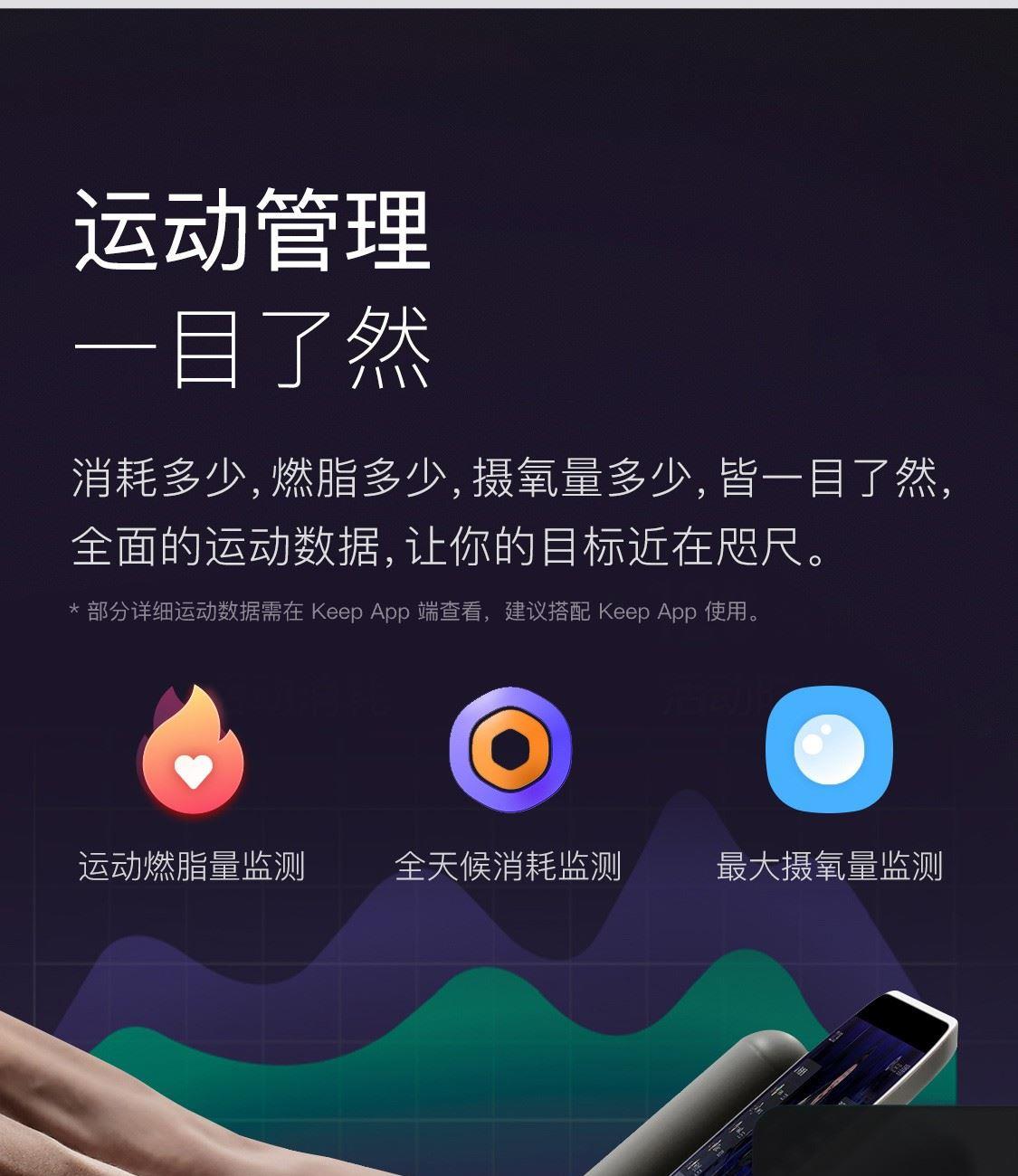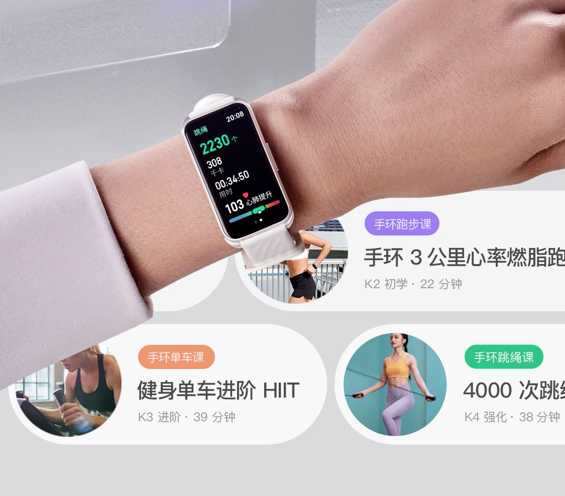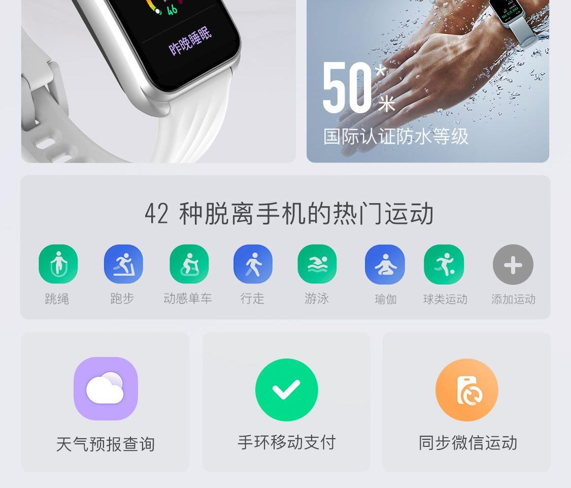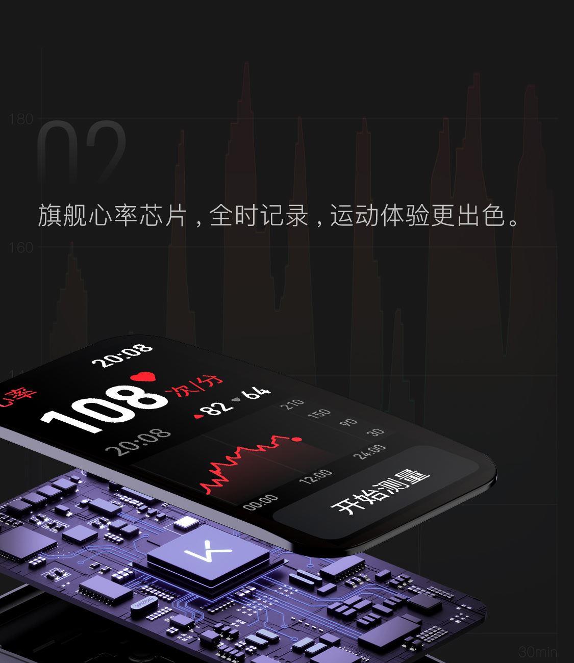1.58"AMOLED 大屏 9.5mm纤薄天花板326视网膜级 PPI 心率实时监测 血氧监测 16000+官方课程互动 工作环境:0-45度 满电可续航:14天;