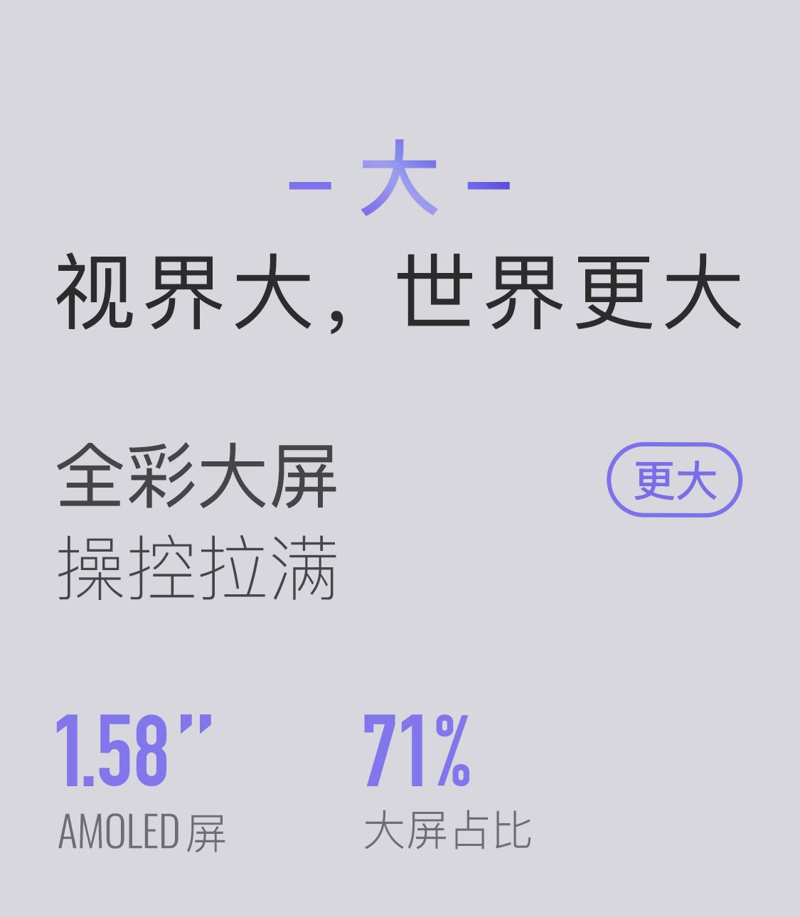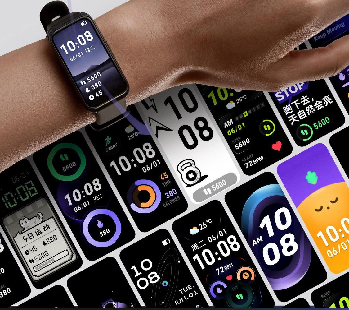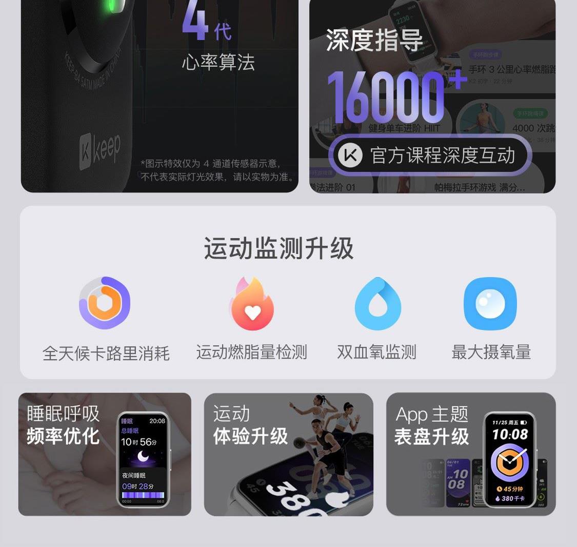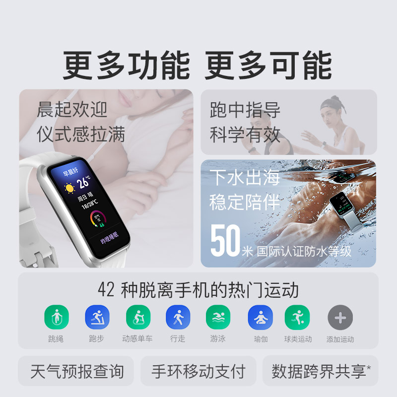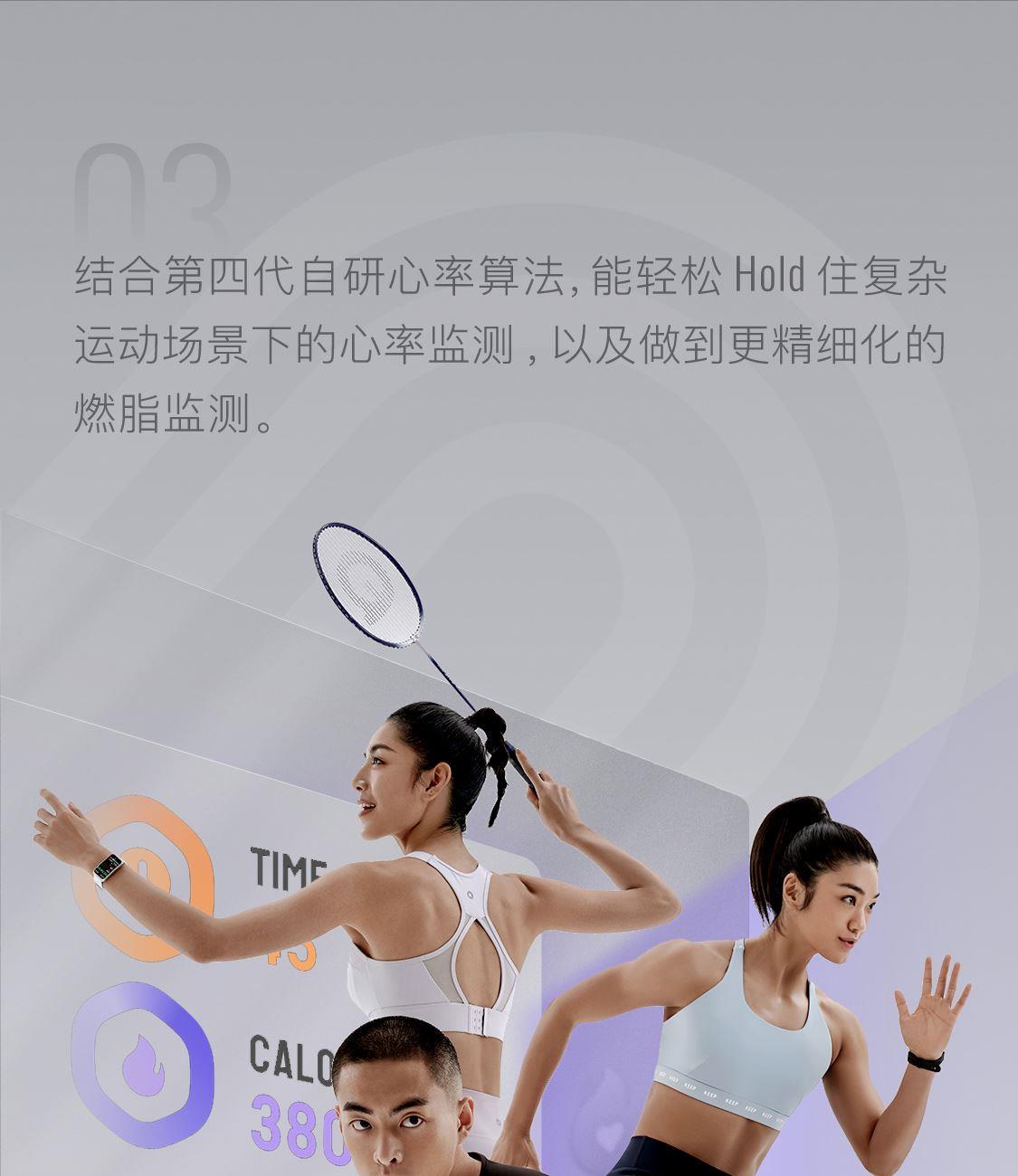 1.58"AMOLED 大屏 9.5mm纤薄天花板326视网膜级 PPI 心率实时监测 血氧监测 16000+官方课程互动 工作环境:0-45度 满电可续航:14天;
