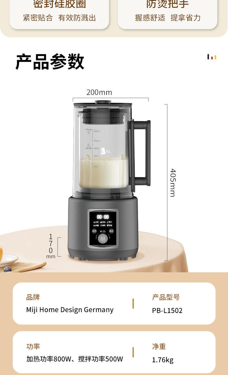 • MijiHome米技生活柔音破壁机PB-L1502