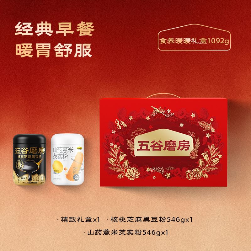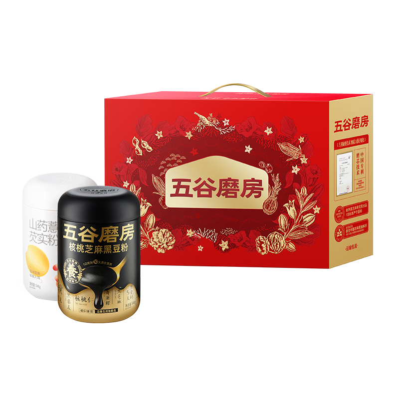 核桃芝麻黑豆粉: 1、高纤高钙高蛋白,10大原生营养+3大植物成分,低GI 2、低GI认证,稳稳低升糖,热量也可控,控糖放心喝 3、5大黑食材>65%,专研配方,严苛选材 4、低温烘焙+研磨,破壁率>96%;双道精细研磨,粉质细腻、营养好吸收 山药薏米芡实粉: 1、全球甄选10大温润食材,暖暖入胃 2、特别添加益生元+益生菌,双重守护肠胃 3、高膳食纤维,含蛋白质、含钙;口感醇香,软糯有料
