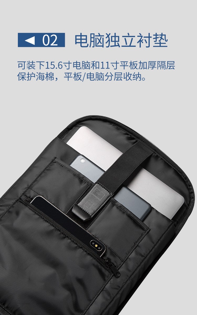 材质:聚酯纤维 产品颜色:黑色 产品规格:280mm*120mm*445mm 大容量,8大功能分区,收纳整洁有序 耐磨防泼水面料,坚韧耐磨,水滴轻擦即去 舒适肩带,运用平衡负重,科学减负 TAS海关锁、USB转接口 厚实手提、背部暗袋、两侧肩部暗袋、行李箱固定带