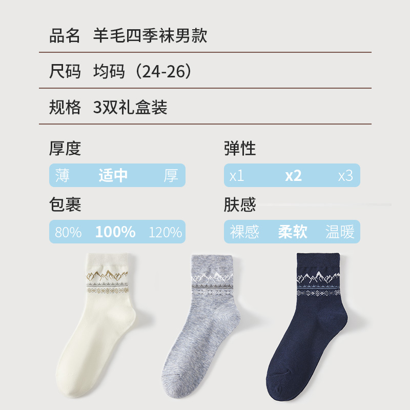 恒源祥羊毛四季袜男款3双装HYX063WZ