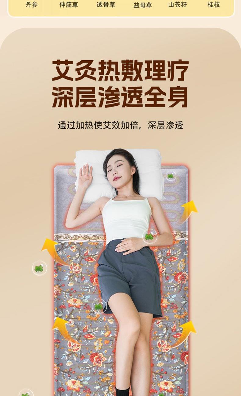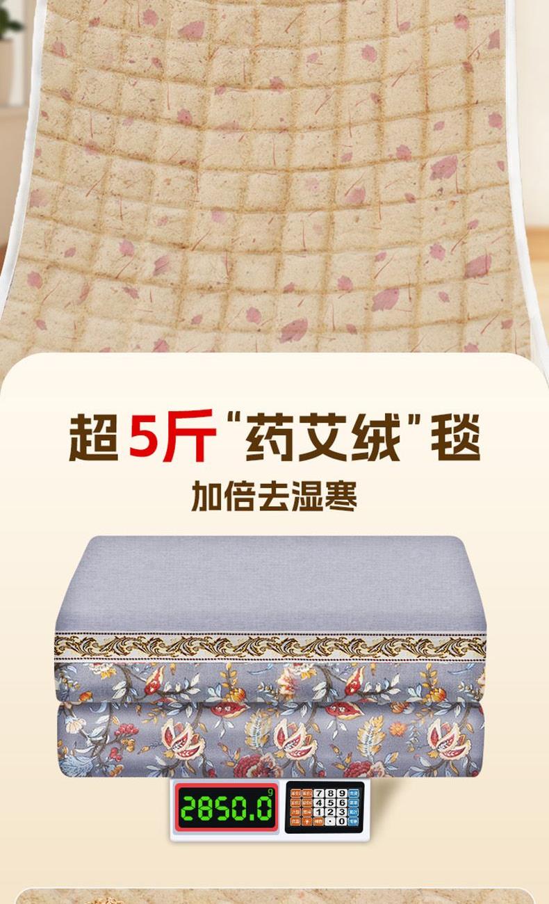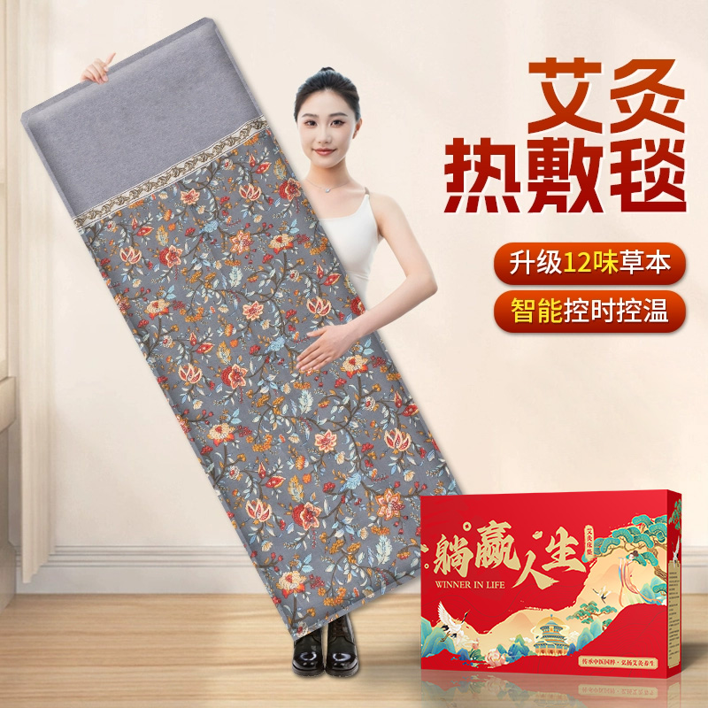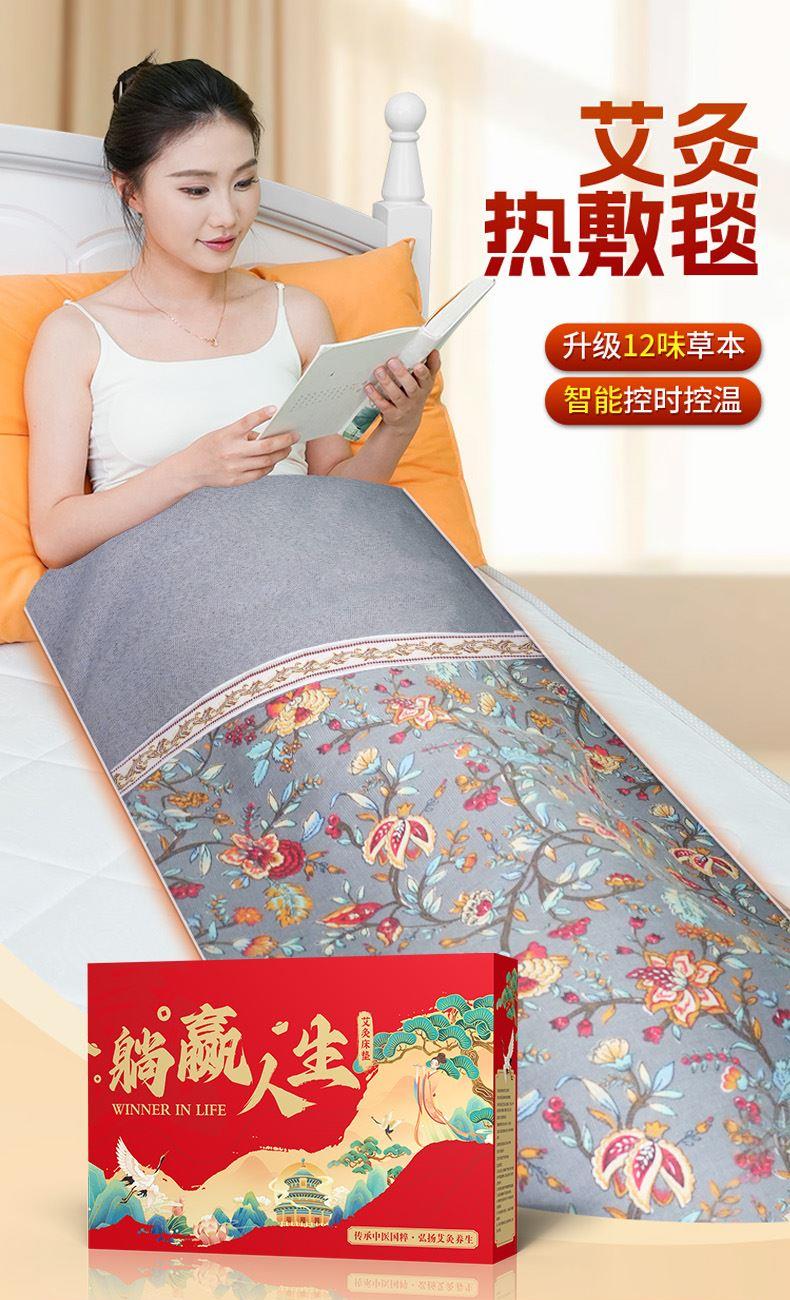 产品主题:不内卷 躺着赢 礼盒规格:600*420*125mm 产品配置:艾绒床垫*1套(含布套、加热芯、艾绒垫、 开关) 精美礼盒*1个 产品尺寸:1500-600mm 产品卖点: 1、电热温灸艾绒床垫是高科技电子艾灸产品,无火无烟艾灸,易操作,使用安全,效果好。 2、老粗布拼接床垫,撞色时尚。 3、艾绒垫填充陈艾绒为主的多味中草药,排湿除寒,疏经通络,改善亚健康。 4、超大国潮风礼盒,送礼有面子。 5、送健康好礼,享躺赢人生。