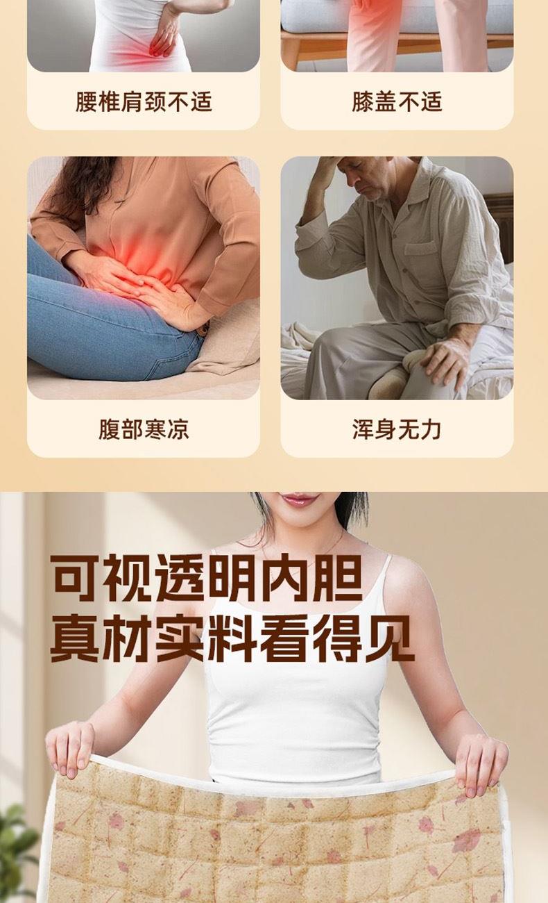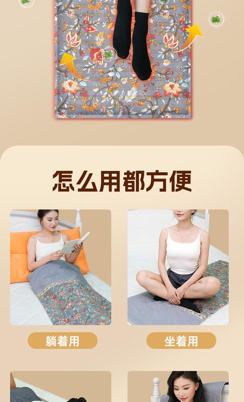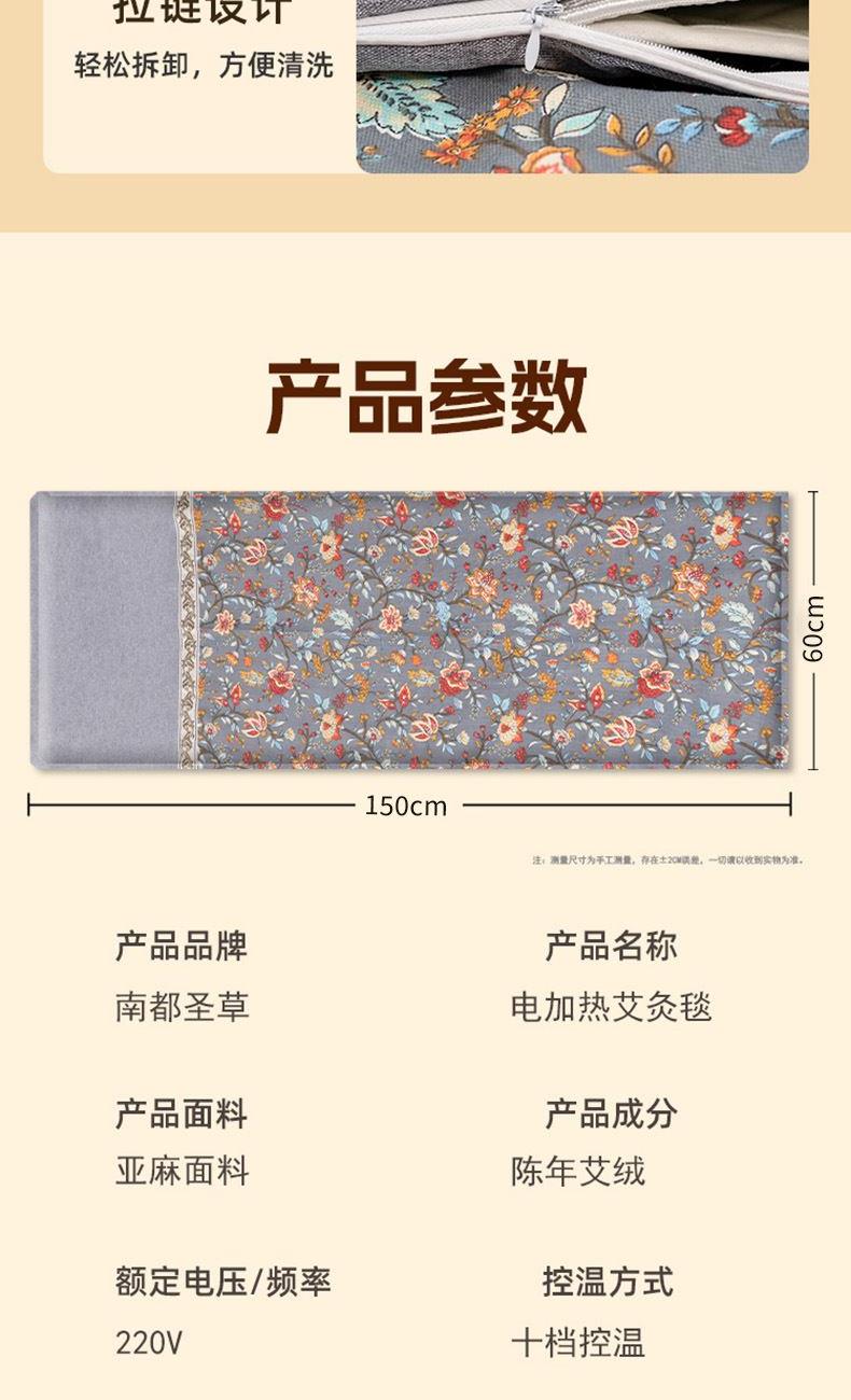 产品主题:不内卷 躺着赢 礼盒规格:600*420*125mm 产品配置:艾绒床垫*1套(含布套、加热芯、艾绒垫、 开关) 精美礼盒*1个 产品尺寸:1500-600mm 产品卖点: 1、电热温灸艾绒床垫是高科技电子艾灸产品,无火无烟艾灸,易操作,使用安全,效果好。 2、老粗布拼接床垫,撞色时尚。 3、艾绒垫填充陈艾绒为主的多味中草药,排湿除寒,疏经通络,改善亚健康。 4、超大国潮风礼盒,送礼有面子。 5、送健康好礼,享躺赢人生。
