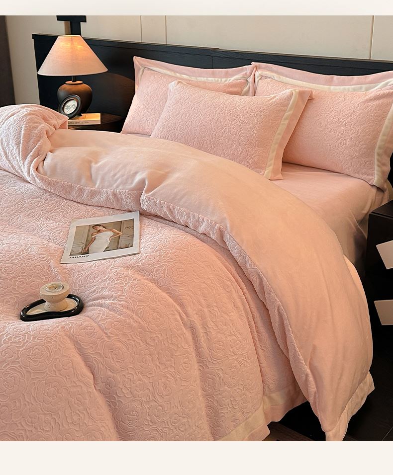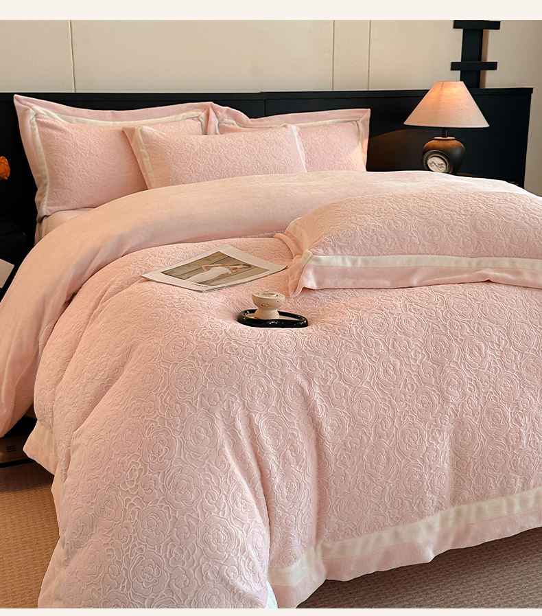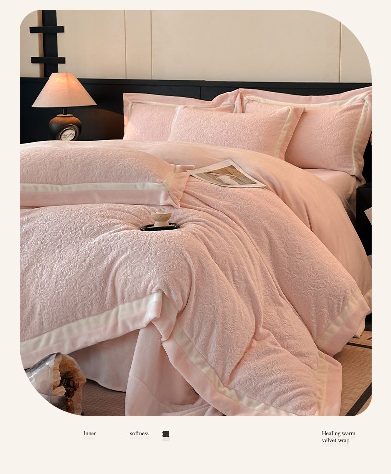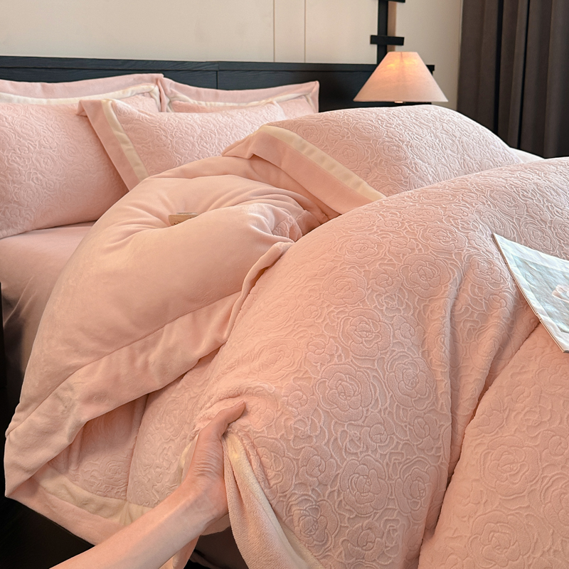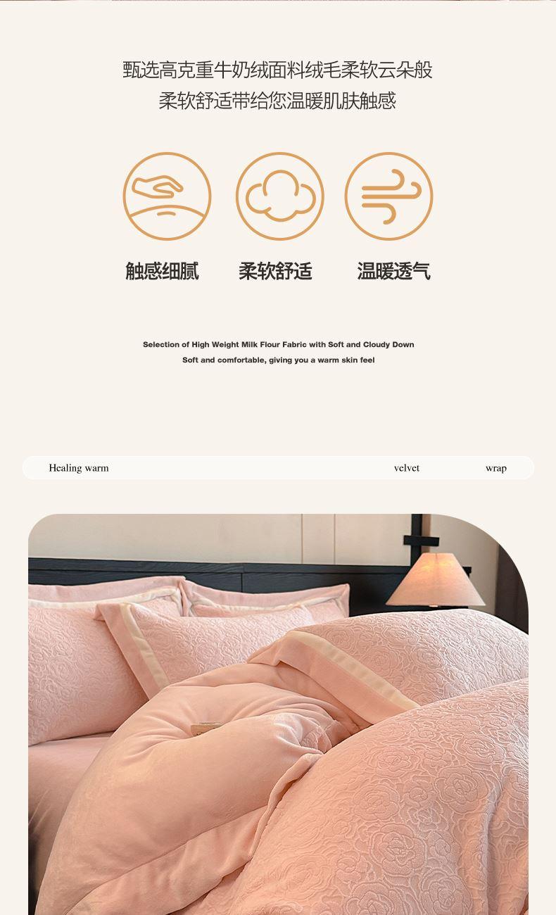 百丽安娜牛奶绒全消光工艺轻奢四件套--粉