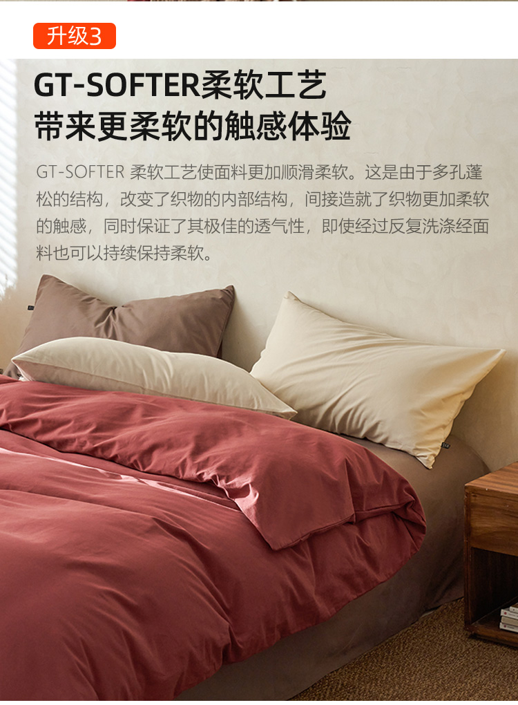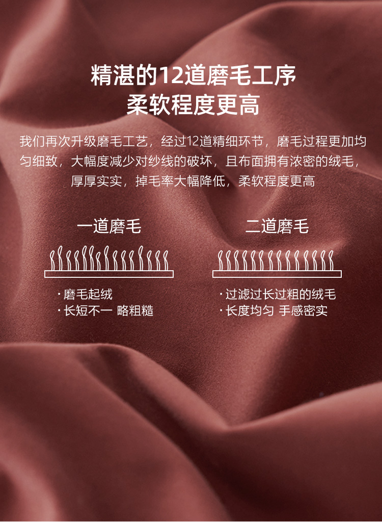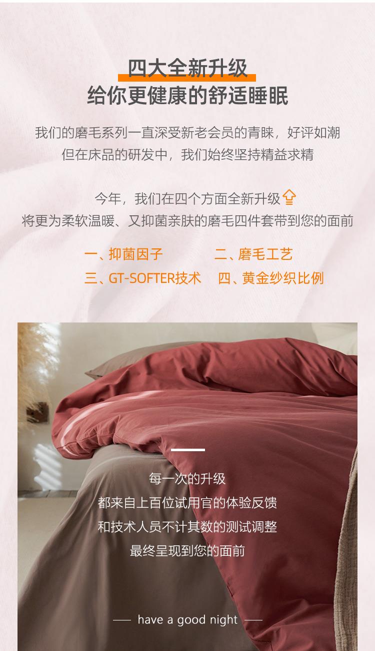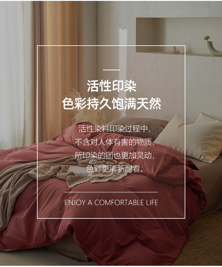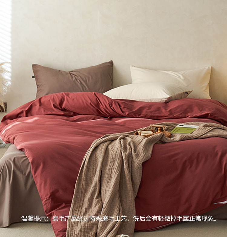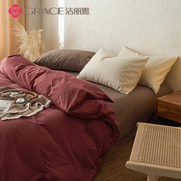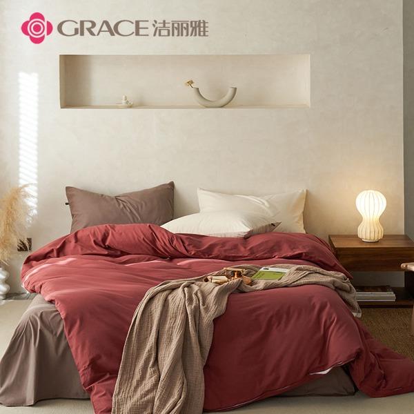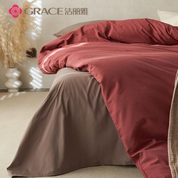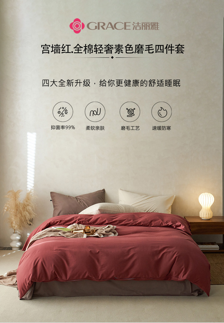 洁丽雅(Grace)宫墙红.全棉轻奢素色磨毛四件套