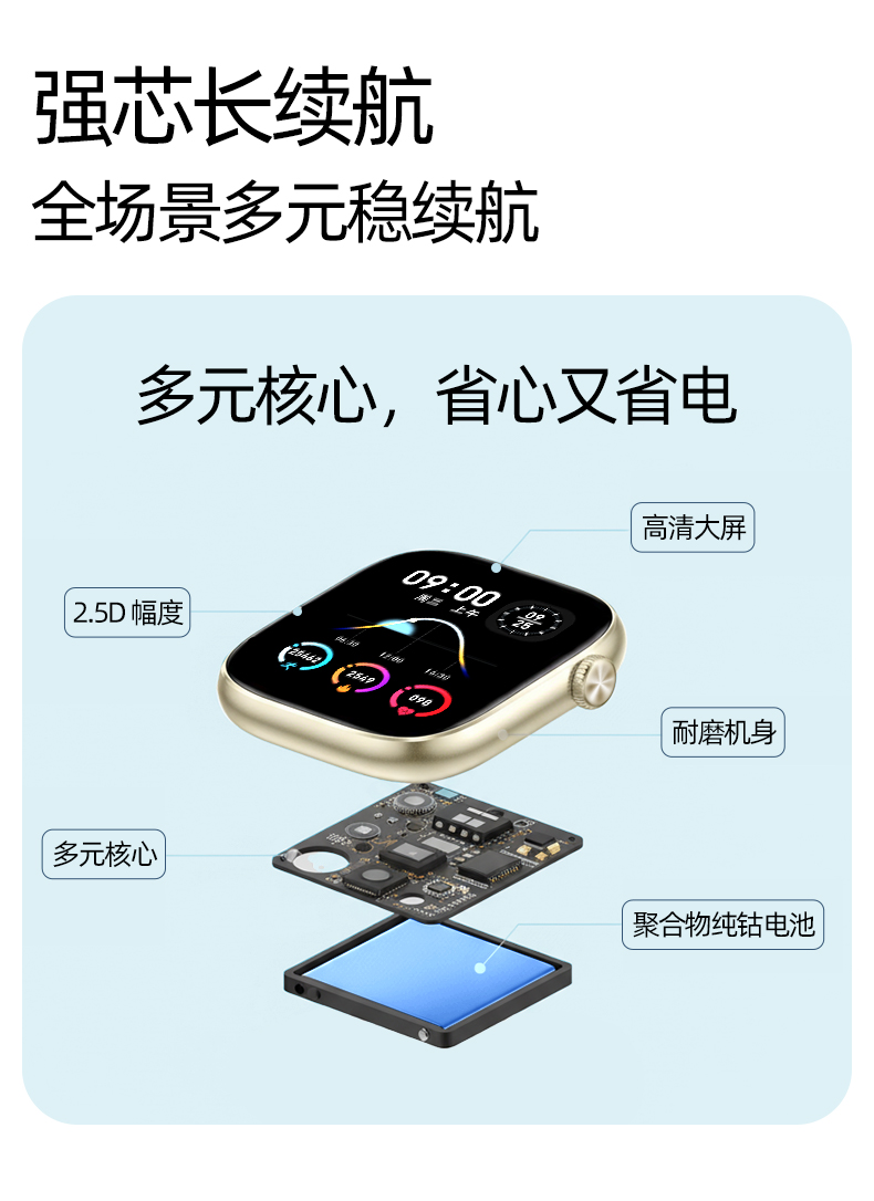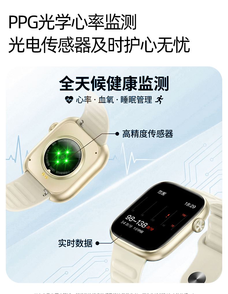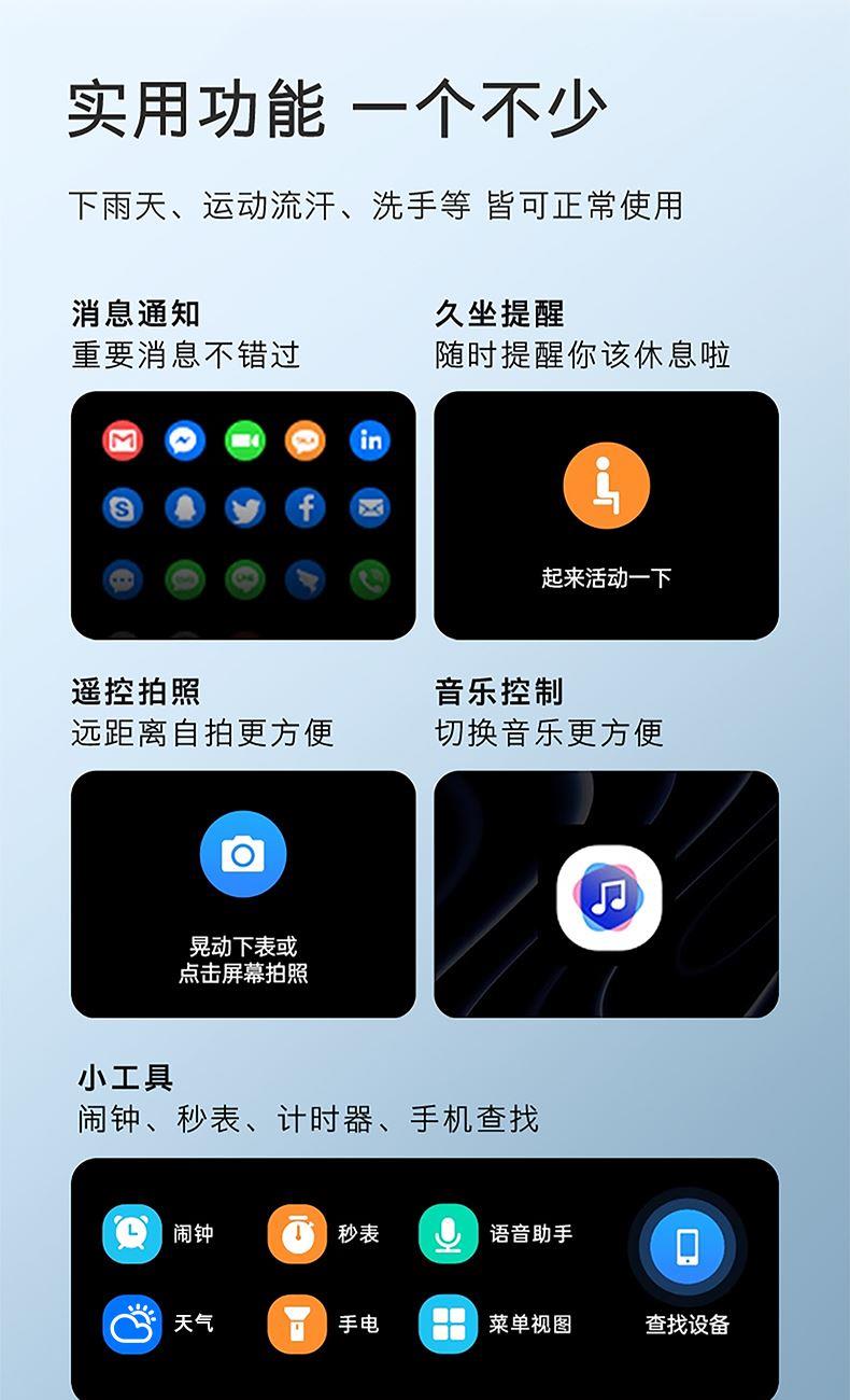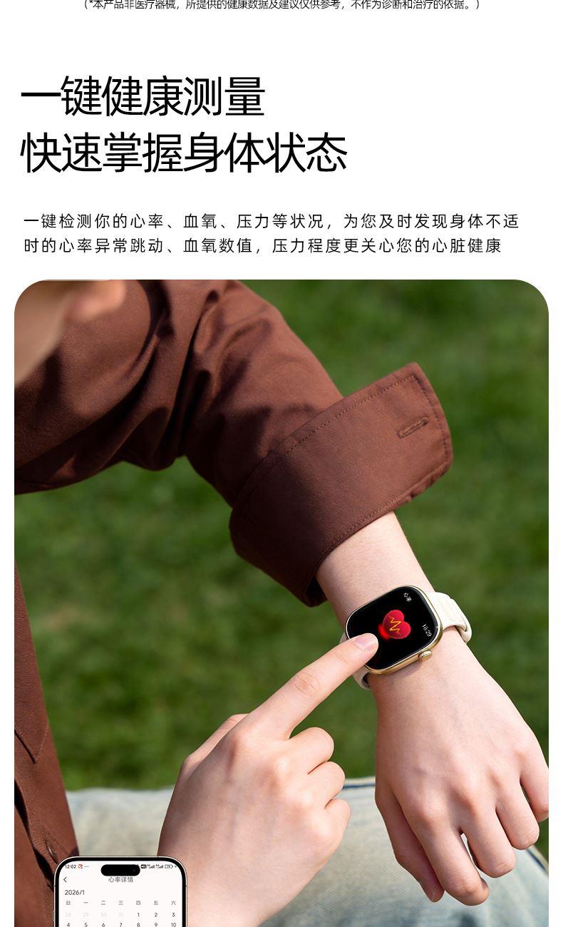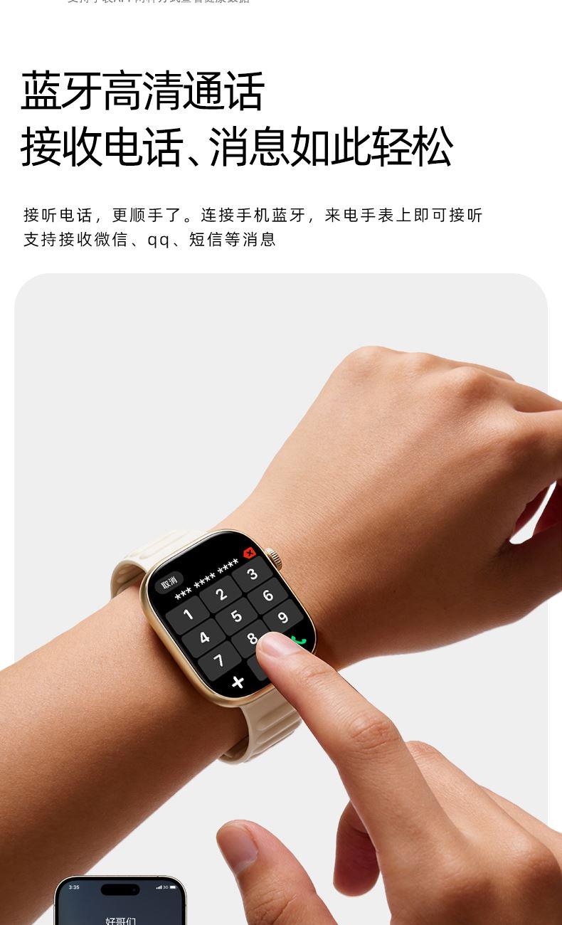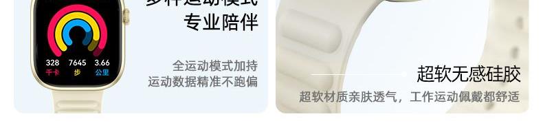 CPU:JL7074 A5 128M 屏幕尺寸:1.83英寸,240*284分辨率 使用时间:2-3天 充电方式:无线充电 电池容量:230mAh 智能手表尺寸(mm):46*39.5*9.5mm 产品材质:上盖-玻璃,机身-锌合金,表带-防静电硅胶 产品净重:g 裸机 APP:RDFit 防水等级:IP68 产品清单:手表+USB电源线+合格证+硅胶表带+说明书+包装盒 1.83英寸TFT高清屏,240*284分辨率、电池230mAh、健康提醒、心率/血氧/血压监测、蓝牙通话、蓝牙音乐、睡眠监测、来电接听、短信提醒、社交APP消息提醒(支持微信,QQ)、闹钟提醒、久坐提醒、多种种运动、翻腕亮屏、女性健康、寻找手环、远程拍照、勿扰模式、表盘自定义、云端后台海量表盘、本地语音功能控制、支付宝、NFC、音乐控制、天气等;