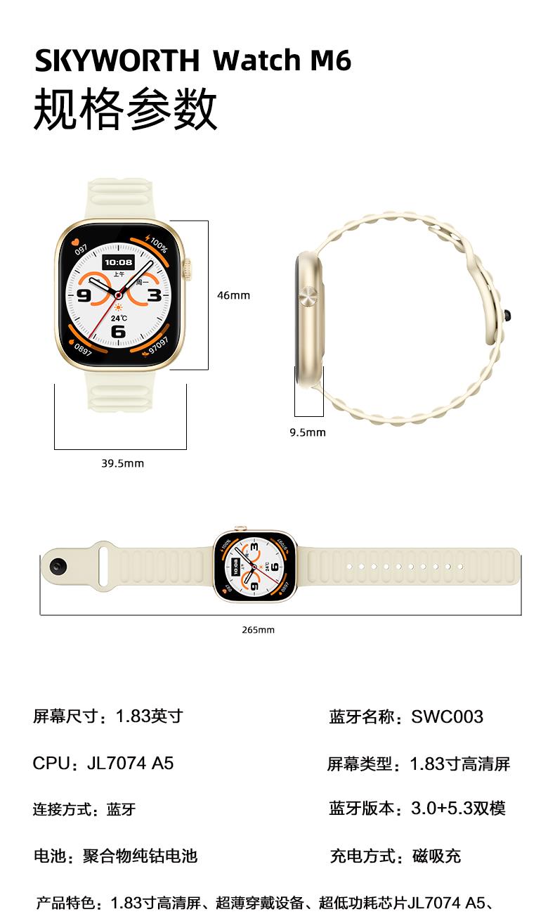 • 创维运动健康心率蓝牙通话智能手表WatchM6