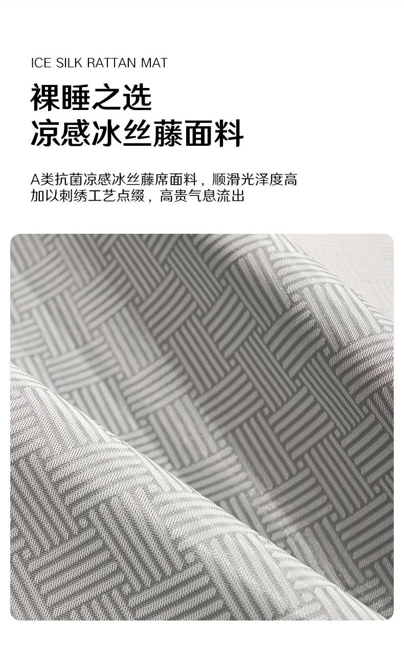 货 号 :HLX-XZ2512 面 料 :植物纤维+凉感纤维 规 格 :180*200cm 重 量 :净重约1900g 包装尺寸 :48*36*13.5cm 装 箱明细 :8套 /箱或50条/包 1.精选面料 : 采用冰丝藤面料,凉感舒适,触感柔软,还原清凉睡感; 2.精湛印染 : 活性印染工艺,不退色不缩水,图案鲜活靓丽,亲肤透气; 3.精致工艺 : 三明治工艺 干爽透气,包边工艺尽显大气;