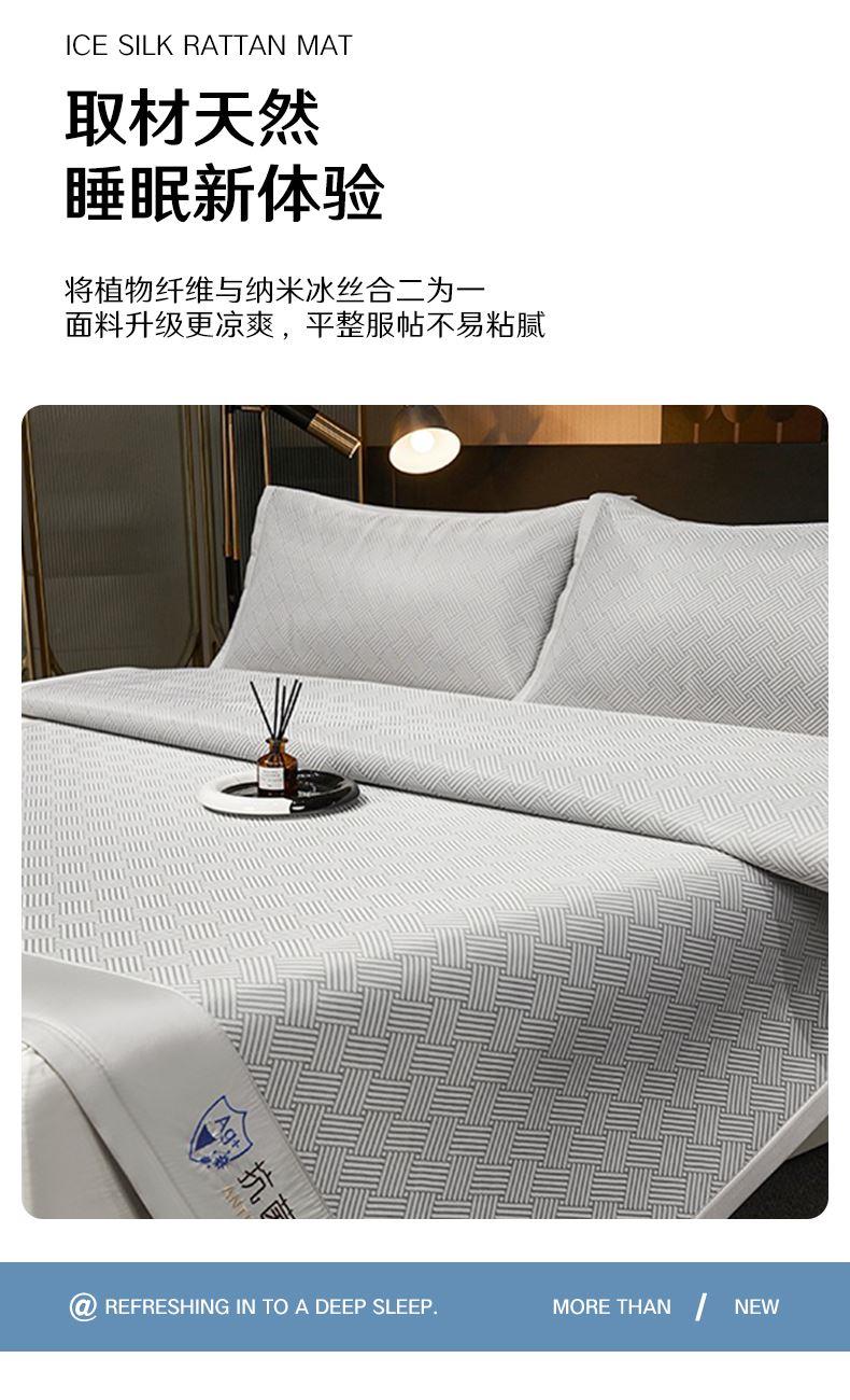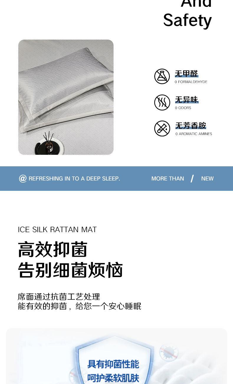 <赫兰希>抗菌冰丝藤三明治凉席三件套-灰