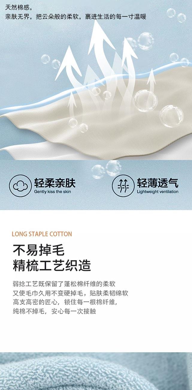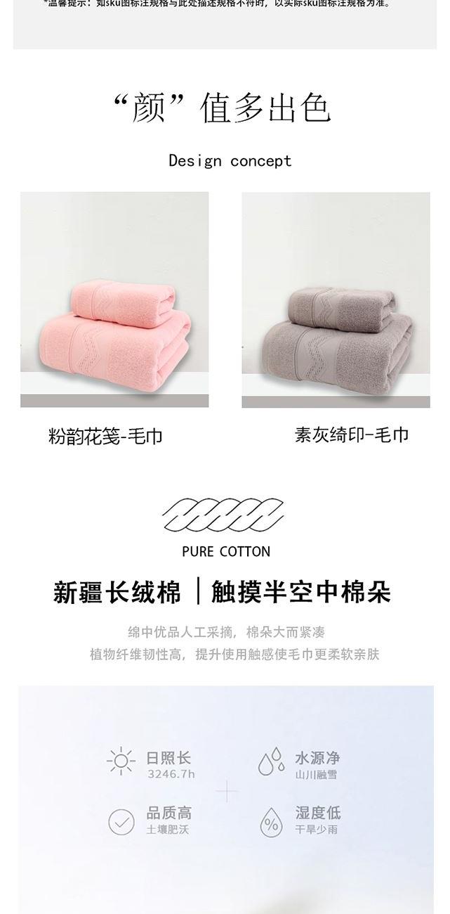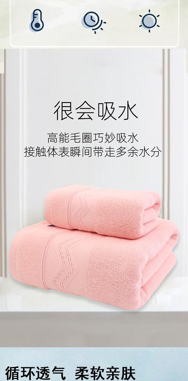 面料:纯棉 规格: 毛巾:33*73cm*2条 浴巾:70*140cm*1条 重量:毛巾:100g;浴巾:370g 1、精密锻档工艺,品质融入每一个细节,活性印染 2、纯棉材质,柔软顺滑,软绵绵的蓬松感,绒毛疏松多孔 3、吸水性好,简约设计,美观大方
