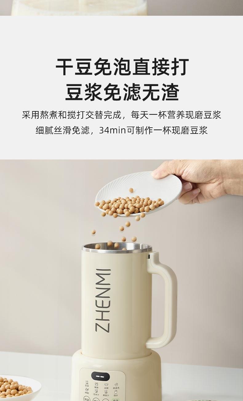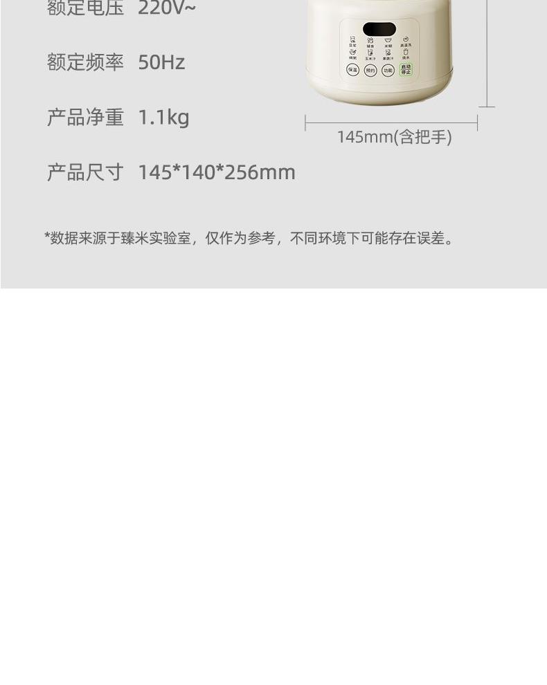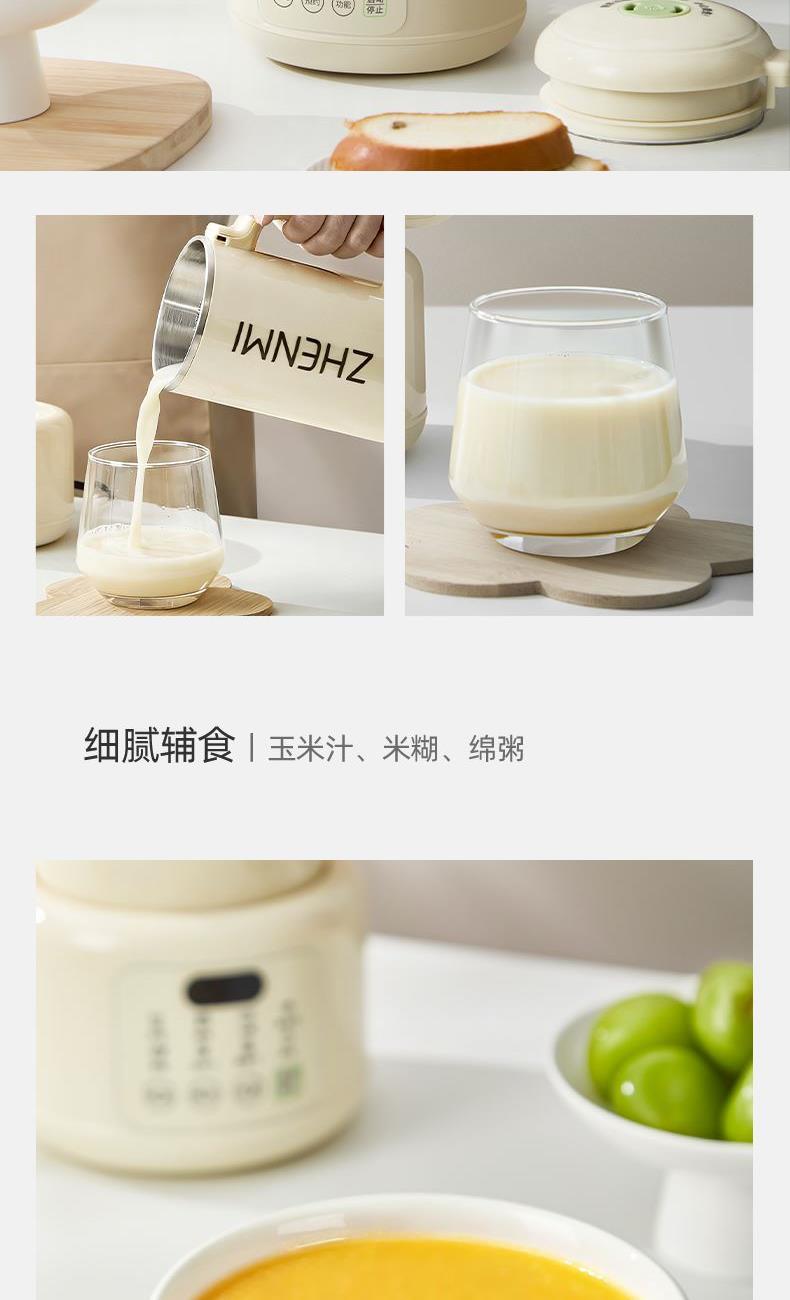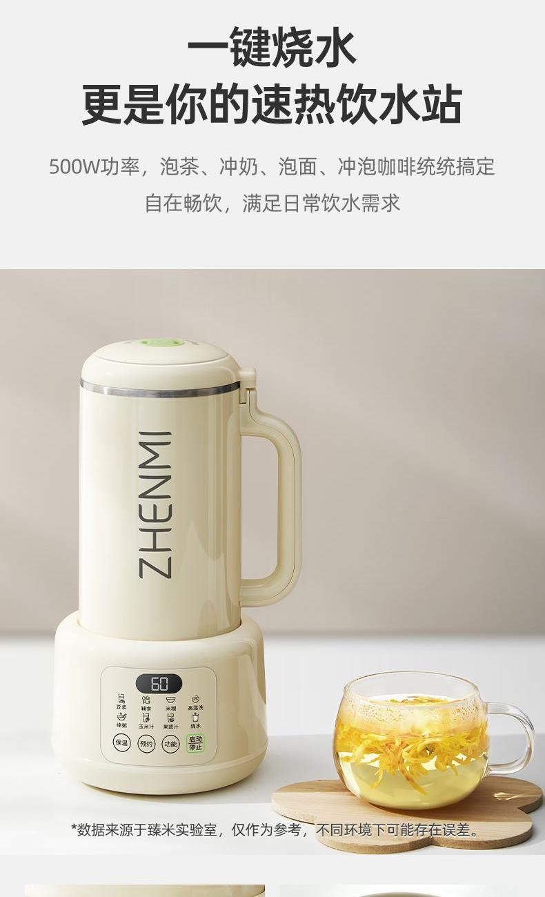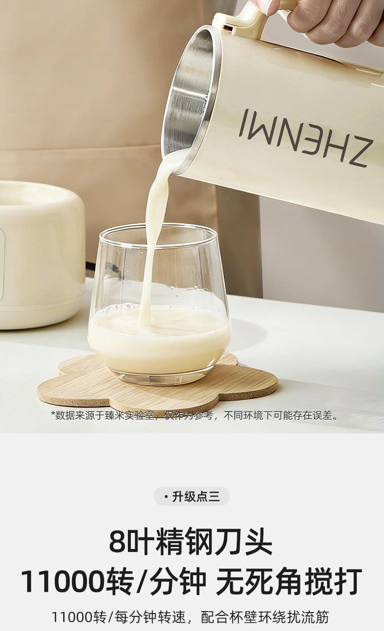 小杯身大肚量,杯体容量700ml,豆浆搅打容量500mL满足2-3人份 食品级304不锈钢杯身,304不锈钢内盖,无塑料异味,入口健康 8叶精钢刀头,11000rpm转速搅打,干豆直打,轻松破豆,释放豆浆醇香 24H超长智能预约(时间结束开始搅打),(果汁、保温、清洗3个功能不可以预约) 4小时默认保温,手动保温4小时;默认温度55°C(温度不可调整) 主机杯身分体,提杯无需拔电,自带5分钟提杯记忆,放入底座自动保温,无需重复操作(5分钟后则需要重新启动电源) 高温自动清洗,还原干净杯身(水温加热到80-90度温度,时间7分钟左右,加上清洗共计12分钟左右) 双重安全开关,开盖保护,避免机器误操作,安全放心使用