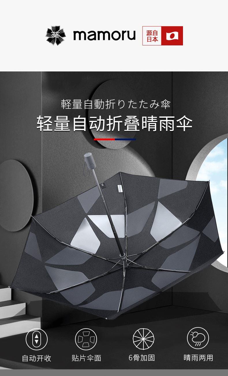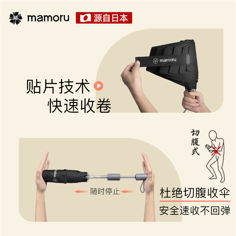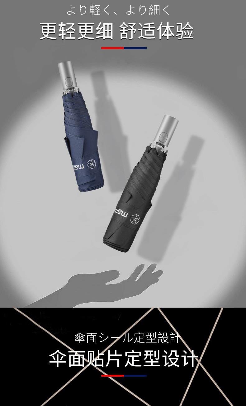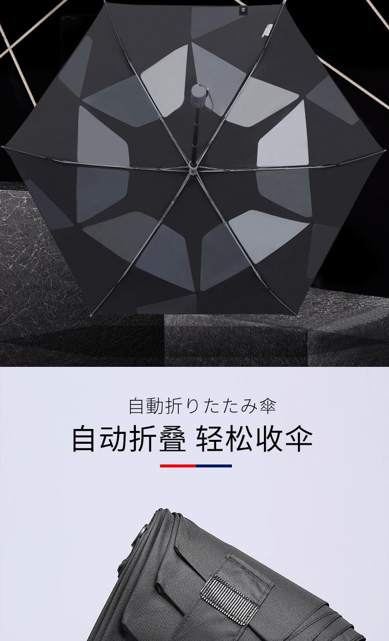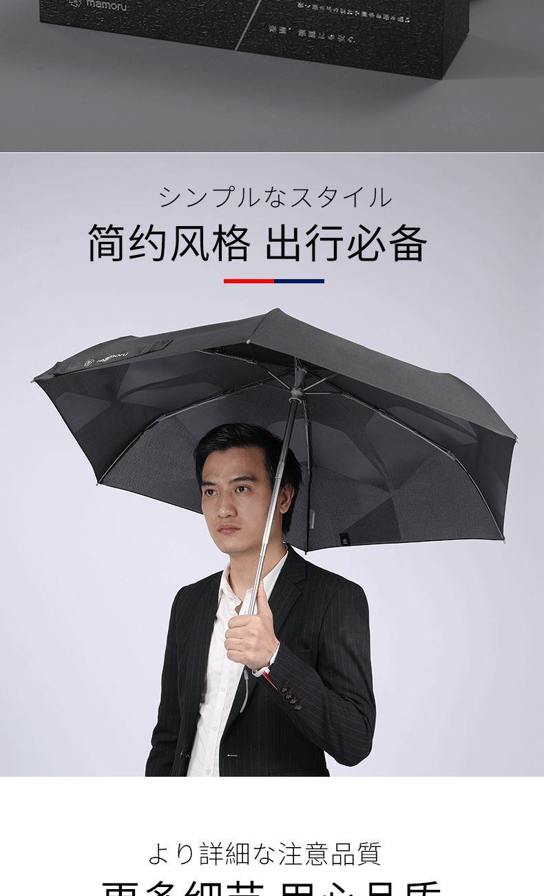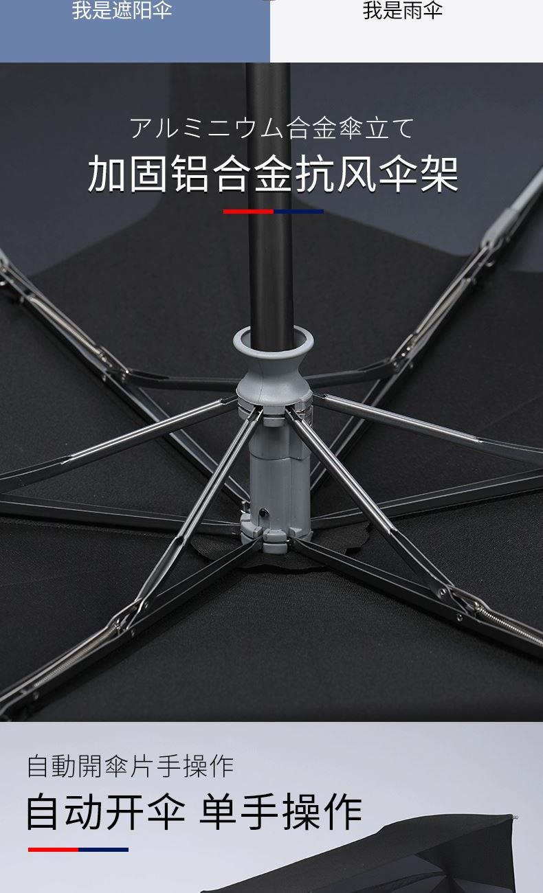 1、采用了日本的技术,伞面贴片定型,解决收伞的烦恼 2、自动开伞,安全式自动收伞,易折叠叠伞匹配一起组合 3、采用了50D300T超泼水5级面料,遮光好,防雨等级5级效果可以做到不湿伞 4、总之是一款集合了伞的全部高新技术。