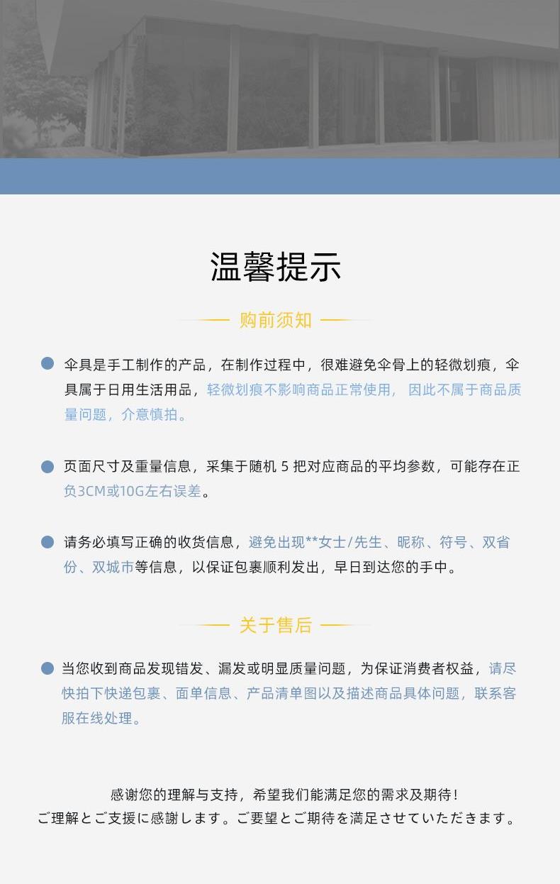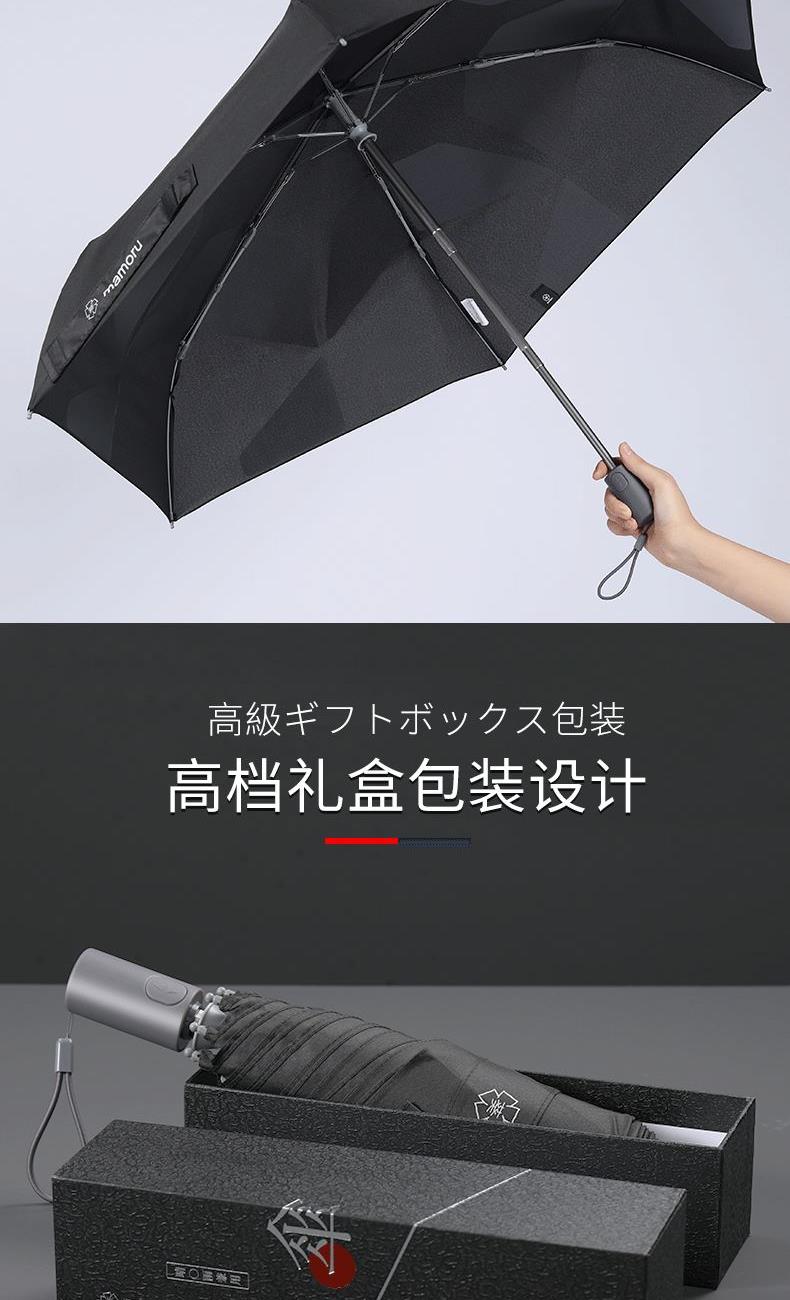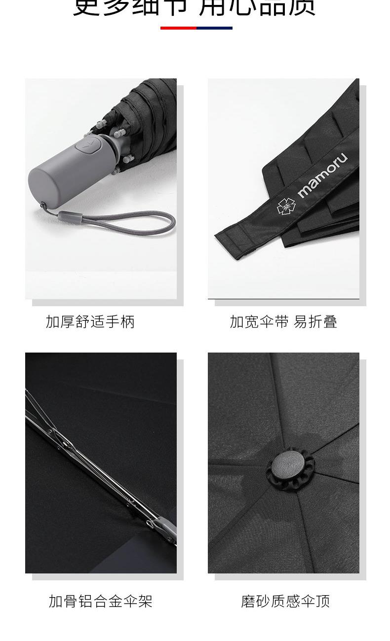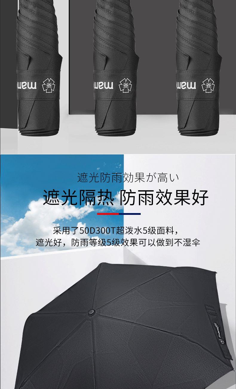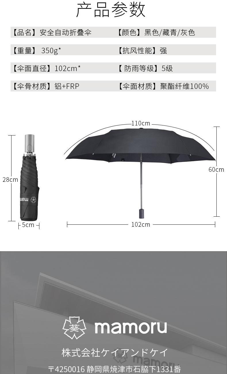 1、采用了日本的技术,伞面贴片定型,解决收伞的烦恼 2、自动开伞,安全式自动收伞,易折叠叠伞匹配一起组合 3、采用了50D300T超泼水5级面料,遮光好,防雨等级5级效果可以做到不湿伞 4、总之是一款集合了伞的全部高新技术。