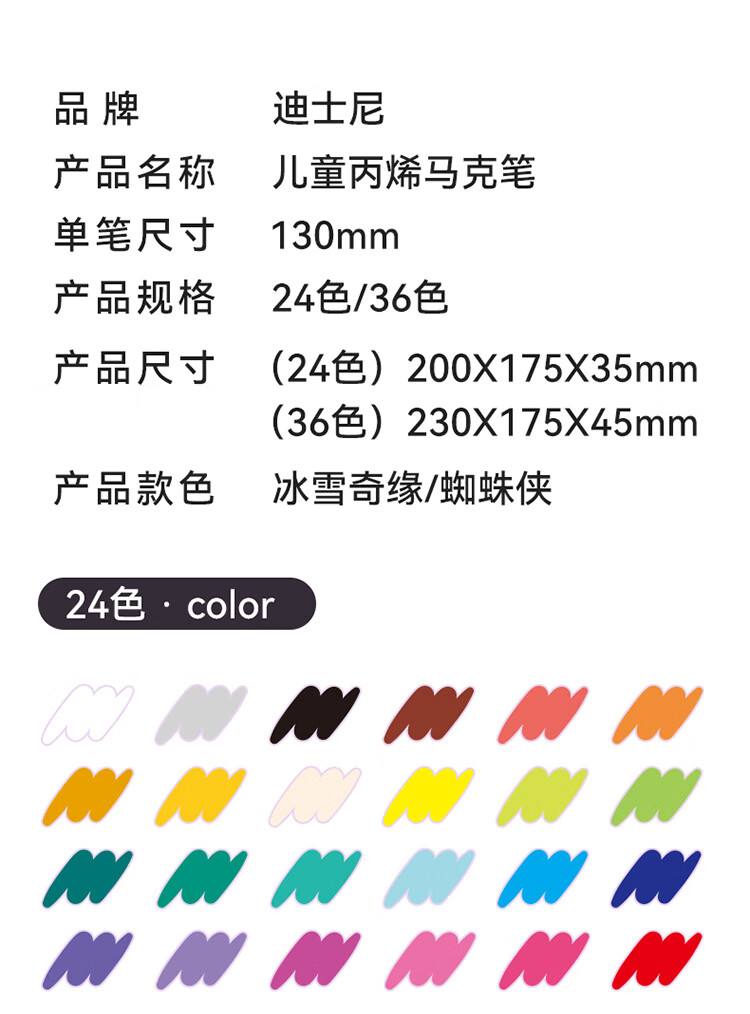迪士尼36色丙烯马克笔儿童绘画工具A60210